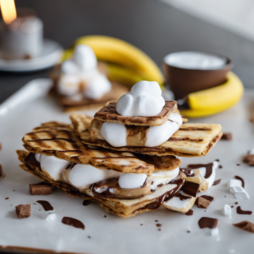 Grilled Banana S'mores with Marshmallow Fluff is a delightful twist on the classic campfire treat. This indulgent dessert combines the sweetness of ripe bananas with the gooey goodness of marshmallow fluff and the rich, chocolatey taste of s'mores. The dish has gained popularity in recent years, especially in the realm of outdoor cooking and backyard barbecues. This delectable creation has its roots in the traditional s'mores, which are believed to have originated in the United States in the early 20th century. However, the addition of grilled bananas and marshmallow fluff brings a unique and modern twist to this beloved treat. Chefs and food enthusiasts have embraced this innovative take on s'mores, experimenting with different grilling techniques and flavor combinations to perfect the dish. While the dish can be enjoyed in various regions, it has particularly gained traction in the Southern United States, where outdoor cooking and grilling are deeply ingrained in the culinary culture. For those seeking the ultimate Grilled Banana S'mores with Marshmallow Fluff experience, some of the best versions of this dish can be found in upscale barbecue restaurants and food trucks that specialize in creative, indulgent desserts. The key to achieving the perfect balance of flavors lies in using ripe, but not overly soft, bananas, and ensuring that the marshmallow fluff is perfectly toasted to a golden brown. While the traditional method involves grilling the bananas and assembling the s'mores with graham crackers and chocolate, some chefs have also explored alternative techniques, such as incorporating caramelized bananas or using artisanal chocolate for a gourmet touch. These variations add depth and complexity to the dish, elevating it to a whole new level of indulgence. In conclusion, Grilled Banana S'mores with Marshmallow Fluff is a delightful and innovative dessert that pays homage to the classic s'mores while introducing exciting new flavors and textures. Whether enjoyed at a cozy backyard gathering or savored at a trendy dessert spot, this dish is sure to satisfy any sweet tooth with its irresistible combination of grilled bananas, marshmallow fluff, and chocolatey goodness.