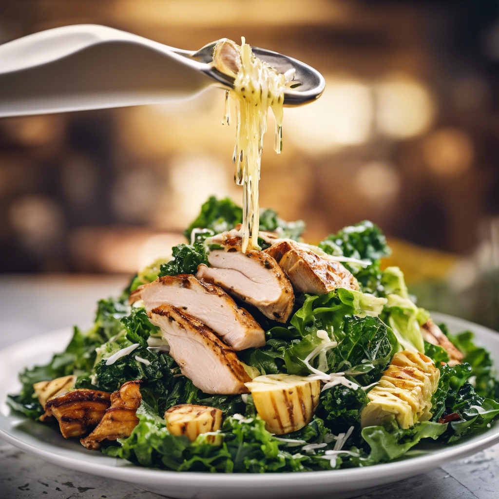 The Grilled Chicken Caesar Salad with Kale, topped with extra parmesan cheese, is a modern twist on the classic Caesar salad. This dish originated in California, where health-conscious chefs sought to elevate the traditional Caesar salad by incorporating nutrient-dense kale and grilled chicken. The addition of extra parmesan cheese adds a rich, savory flavor to the salad. Today, this dish can be found in trendy restaurants and cafes across the United States, particularly in California and New York. The key to a perfect Grilled Chicken Caesar Salad with Kale lies in the quality of the ingredients, especially the parmesan cheese, which should be freshly grated for maximum flavor. For a unique alternative, some chefs also incorporate homemade croutons or a tangy lemon vinaigrette to add a refreshing twist to the dish.