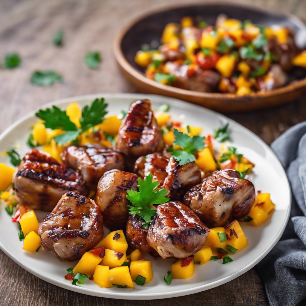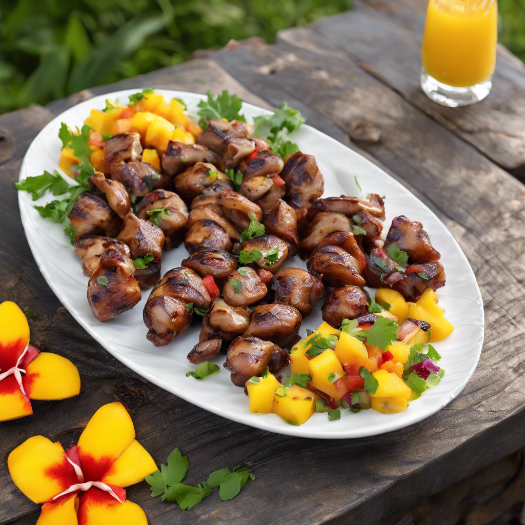 Grilled Chicken Hearts with Tangy Mango Salsa