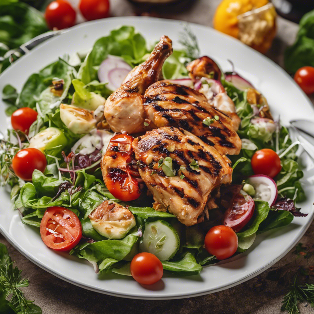 Grilled chicken salad has a rich history dating back to ancient times when people first began grilling meat over open flames. This dish has evolved over the years, with various cultures adding their own unique flavors and ingredients. In modern times, renowned chefs like Jamie Oliver and Gordon Ramsay have popularized grilled chicken salad, incorporating fresh, seasonal produce and zesty dressings. The Mediterranean region is particularly known for its flavorful grilled chicken salads, featuring ingredients like feta cheese, olives, and sun-ripened tomatoes. Today, the best versions of this dish can be found in upscale restaurants and trendy cafes, where the key to a perfect grilled chicken salad lies in using high-quality, tender chicken and vibrant, crisp vegetables. For a unique twist, consider marinating the chicken in a tangy citrus or herb-infused marinade before grilling.