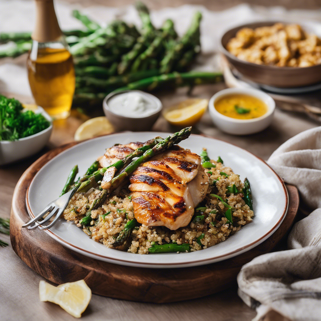 Grilled Chicken with Asparagus and Quinoa is a delightful and healthy dish that has gained popularity in recent years. The dish is a perfect blend of lean protein, fresh vegetables, and nutritious quinoa, making it a favorite among health-conscious food enthusiasts. The history of this dish can be traced back to the rise of the clean eating movement, where people sought out flavorful yet nutritious meals. Chefs and home cooks alike have embraced this dish, infusing it with their own unique twists and flavors. Today, the best versions of this dish can be found in farm-to-table restaurants and health-focused eateries, where fresh, high-quality ingredients are prioritized. The key to a successful Grilled Chicken with Asparagus and Quinoa lies in perfectly grilled chicken, tender-crisp asparagus, and fluffy, well-seasoned quinoa. While the traditional recipe calls for grilling the chicken and asparagus, some chefs also opt for roasting or pan-searing methods to add depth of flavor. Whether enjoyed at a trendy bistro or prepared at home, this dish continues to be a go-to for those seeking a satisfying and nutritious meal.