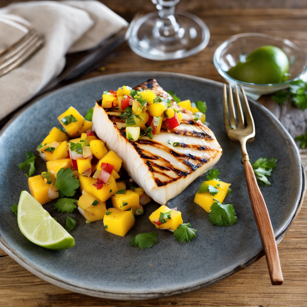 - Serve grilled halibut topped with mango salsa. Enjoy!