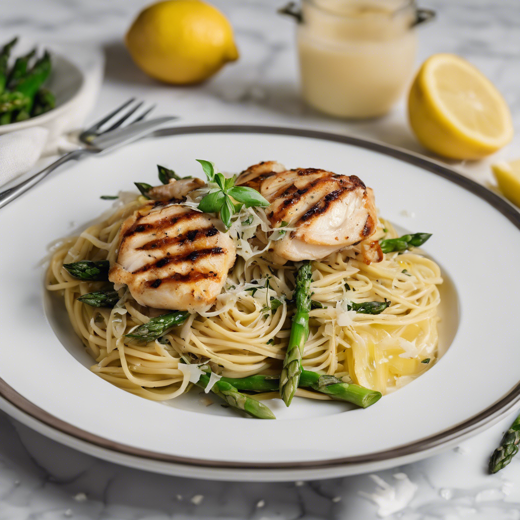 The history of Grilled Lemon Herb Chicken and Asparagus Pasta with extra Parmesan cheese is a delightful fusion of Mediterranean and Italian flavors. This dish is a modern twist on classic Italian pasta, infused with the zesty flavors of lemon and the earthy aroma of fresh herbs. The addition of grilled chicken and asparagus adds a hearty and healthy touch, while the extra Parmesan cheese brings a rich and indulgent element to the dish. This delectable creation has its roots in the kitchens of innovative chefs who sought to combine the vibrant flavors of the Mediterranean with the comforting appeal of Italian cuisine. The dish has gained popularity in various regions known for their culinary expertise, such as Tuscany, where the use of fresh, locally sourced ingredients is a hallmark of traditional cooking. Today, the best versions of this dish can be found in authentic Italian trattorias and modern Mediterranean-inspired restaurants, where skilled chefs pay homage to the dish's origins while adding their own creative flair. The key to perfecting this dish lies in achieving the ideal balance of flavors – the chicken should be tender and infused with the bright citrus notes of lemon and the fragrant essence of herbs, while the asparagus should offer a satisfying crunch. The pasta, al dente and coated in a luscious Parmesan-infused sauce, brings everything together in a harmonious medley of tastes and textures. For those seeking a famous alternative method for making this dish, some chefs recommend marinating the chicken in a blend of lemon juice, olive oil, and herbs before grilling to enhance its succulence and flavor. Additionally, incorporating a variety of fresh herbs such as basil, thyme, and oregano can elevate the dish to new heights, adding layers of complexity to the overall taste profile. In conclusion, Grilled Lemon Herb Chicken and Asparagus Pasta with extra Parmesan cheese is a celebration of Mediterranean and Italian culinary traditions, brought together in a harmonious marriage of flavors. Whether enjoyed in a rustic trattoria in Tuscany or a trendy bistro in a bustling city, this dish continues to captivate diners with its vibrant, satisfying, and utterly delicious appeal.