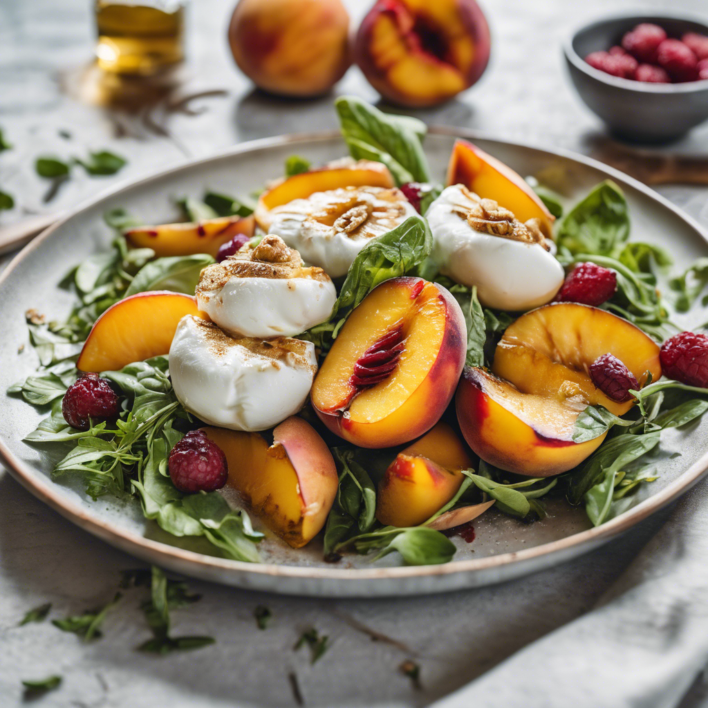 The Grilled Peach and Burrata Salad is a delightful combination of sweet and savory flavors that has become a popular dish in modern cuisine. This salad has its roots in the Mediterranean region, where the tradition of using fresh, seasonal ingredients is deeply ingrained. Chefs like Yotam Ottolenghi have popularized this dish, showcasing the simplicity and elegance of the ingredients. The succulent sweetness of grilled peaches pairs perfectly with the creamy richness of burrata cheese, creating a harmonious balance of flavors. The dish has gained popularity in upscale restaurants and is often featured on seasonal menus. The key to a perfect Grilled Peach and Burrata Salad lies in using ripe, juicy peaches and high-quality burrata cheese. Today, this dish can be savored in renowned restaurants across the world, with each chef adding their own unique twist to the recipe.