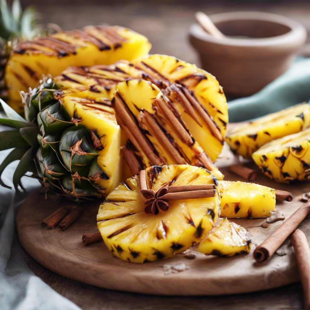 Grilled pineapple with a sprinkle of cinnamon has a rich history dating back to the tropical regions of South America and the Caribbean. This delectable dish has been a staple in the culinary traditions of these areas for centuries. The sweet and tangy flavor of the pineapple combined with the warm, earthy notes of cinnamon creates a mouthwatering experience that has captivated food enthusiasts worldwide. Renowned chefs and restaurants have elevated this dish, infusing it with their own unique twists and techniques. The best version of this dish can be found in the vibrant street markets of Brazil, where skilled vendors expertly grill fresh pineapple slices and dust them with a generous sprinkle of aromatic cinnamon. To recreate this tantalizing treat at home, it's crucial to select ripe, juicy pineapples and to grill them to perfection, achieving those coveted caramelized grill marks. The addition of cinnamon adds a delightful warmth and depth to the flavor profile, making it a standout dessert or snack. Whether enjoyed on its own or as a complement to savory dishes, grilled pineapple with a sprinkle of cinnamon is a true culinary delight.