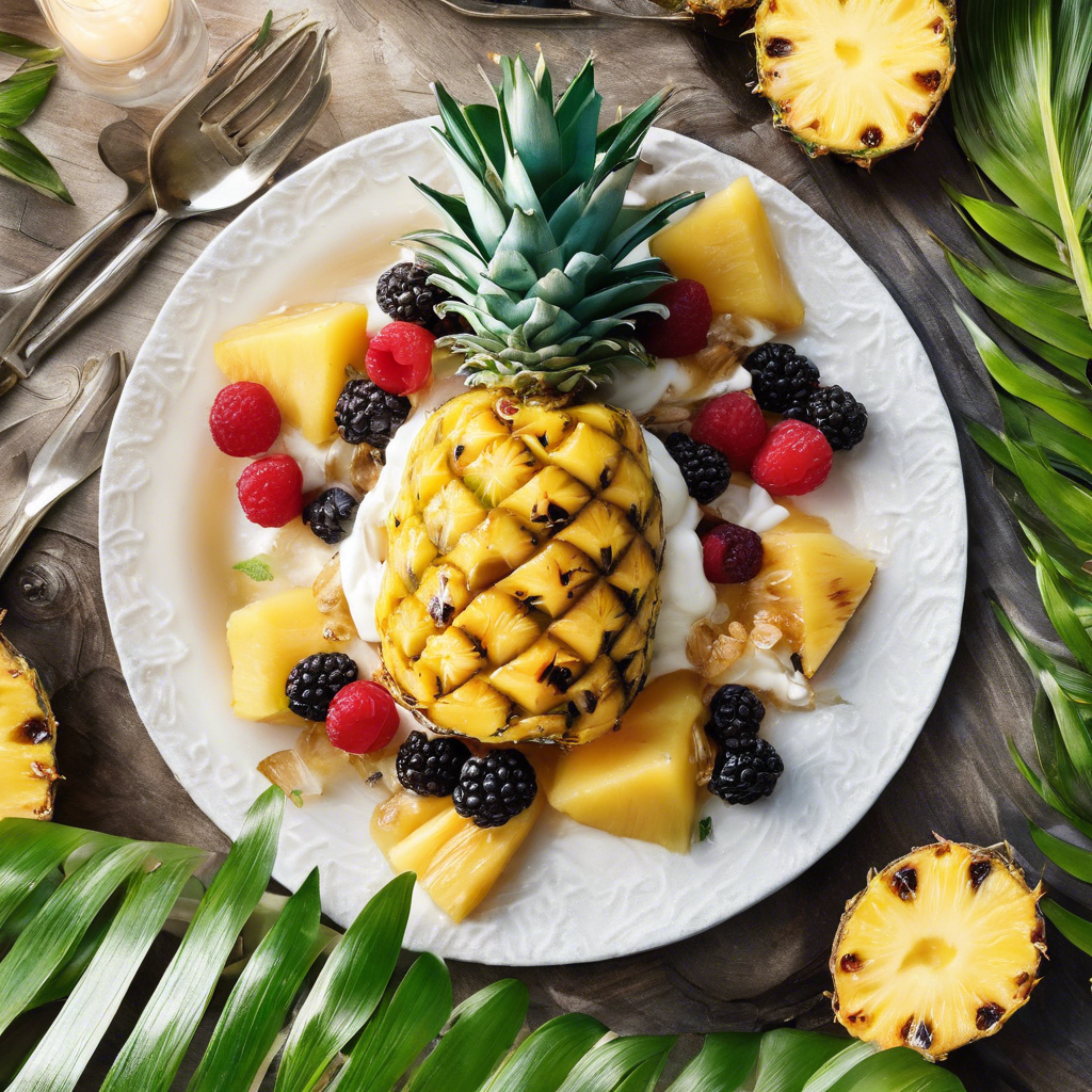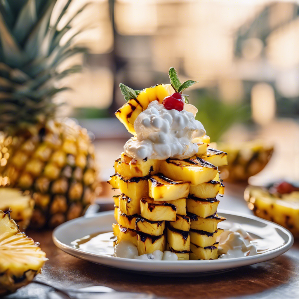 The Grilled Pineapple Sundae is a delightful dessert that combines the smoky sweetness of grilled pineapple with the creamy indulgence of ice cream. This tropical treat has its roots in the sunny regions of Hawaii, where chefs first began experimenting with grilling pineapple to enhance its natural flavors. The dish gained popularity in the United States as a refreshing and unique dessert option. Today, the best versions of this dish can be found in restaurants that specialize in Hawaiian or tropical cuisine. The key to a perfect Grilled Pineapple Sundae lies in the quality of the pineapple and the skillful grilling technique, which caramelizes the fruit and adds a depth of flavor. For a twist, some chefs also drizzle the grilled pineapple with a rum-infused caramel sauce or sprinkle it with toasted coconut for an extra layer of tropical goodness. Whether enjoyed at a beachside cafe or made at home, the Grilled Pineapple Sundae is a delightful way to savor the flavors of the tropics.