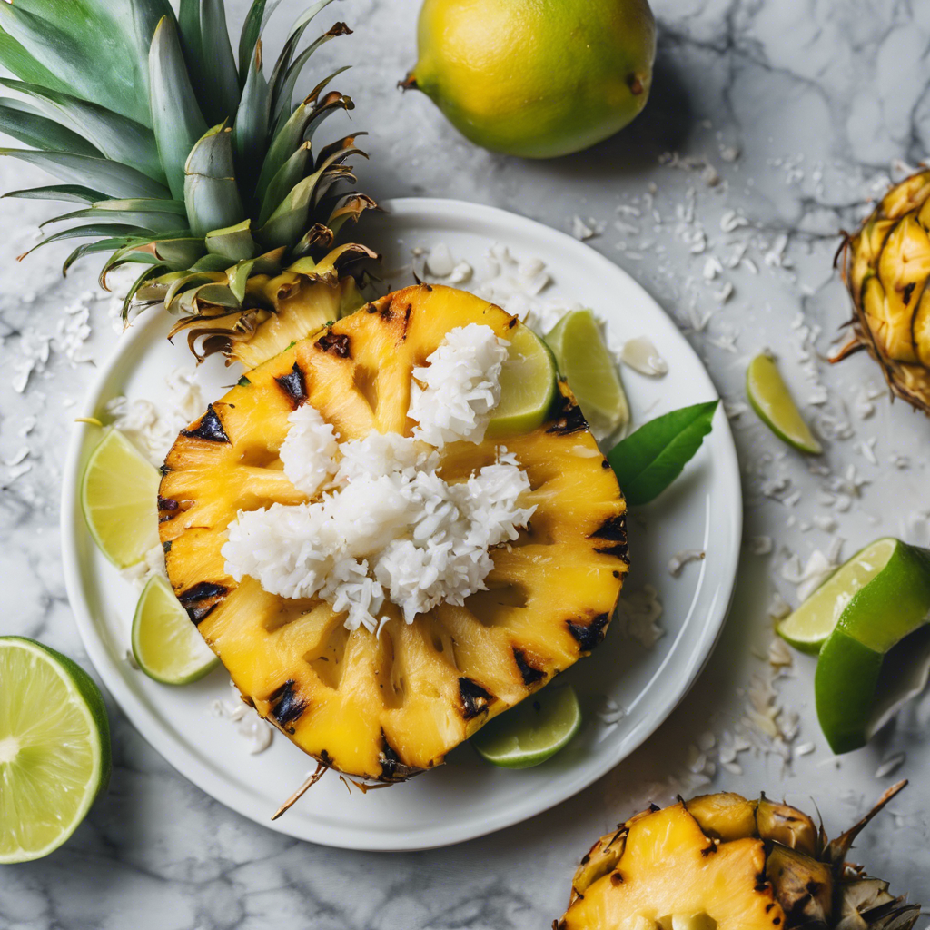 Grilled Pineapple with Coconut and Lime is a tropical delight that originated in the Caribbean and has become a popular dessert or side dish in many parts of the world. The dish is believed to have been created by Caribbean chefs who wanted to combine the sweetness of pineapple with the creamy richness of coconut and the tangy zest of lime. This flavorful combination quickly gained popularity and can now be found on the menus of many Caribbean and tropical-themed restaurants. The key to making the perfect Grilled Pineapple with Coconut and Lime is to use ripe, juicy pineapple, freshly squeezed lime juice, and high-quality coconut milk. The dish is often grilled to caramelize the natural sugars in the pineapple, creating a deliciously smoky flavor that pairs perfectly with the creamy coconut and zesty lime. For a unique twist, some chefs also add a sprinkle of chili powder or a drizzle of honey to enhance the flavor profile. Today, the best versions of this dish can be found in restaurants that specialize in Caribbean or tropical cuisine, where chefs expertly balance the sweet, tangy, and creamy elements to create a truly unforgettable dish. Whether served as a refreshing dessert or a flavorful side dish, Grilled Pineapple with Coconut and Lime is a delightful treat that captures the essence of the tropics in every bite.