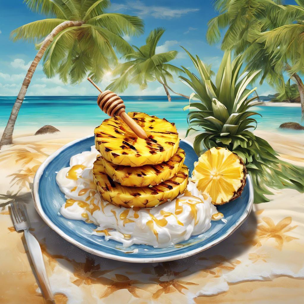 Grilled Pineapple with Coconut Cream, drizzled with honey, is a tropical delight that originated in the vibrant culinary scene of Southeast Asia. This luscious dessert has gained popularity for its tantalizing blend of flavors and textures. Renowned chefs in Thailand and Indonesia have perfected this dish, infusing it with their unique culinary expertise. The succulent pineapple is grilled to caramelized perfection, enhancing its natural sweetness, while the velvety coconut cream adds a rich, creamy contrast. The drizzle of honey provides a delightful touch of sweetness, elevating the dish to a heavenly indulgence. For the best version of this dish, seek out restaurants specializing in Southeast Asian cuisine or try making it at home with fresh, ripe pineapple and high-quality coconut cream.