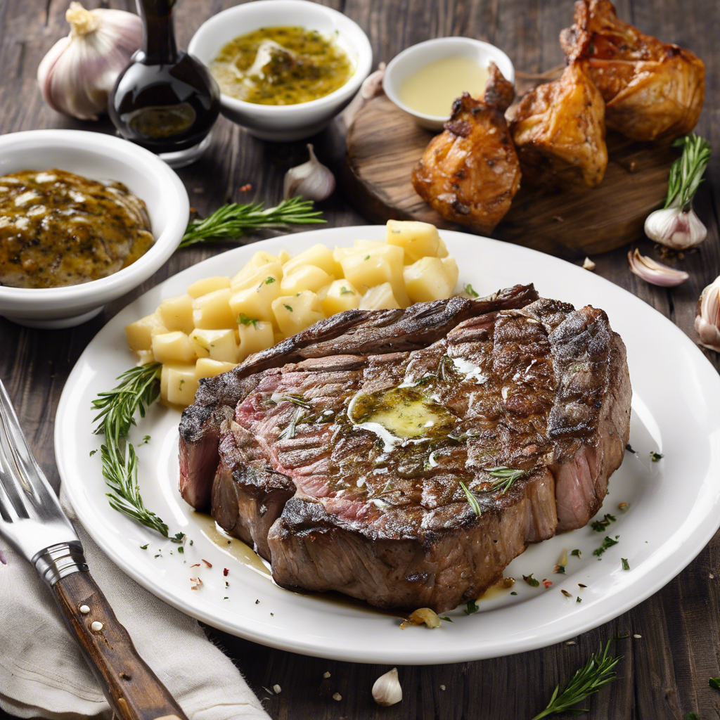 The history of Grilled Ribeye Steak with garlic butter dates back to the early 20th century when it became a popular dish in American steakhouses. Renowned chefs like Julia Child and Emeril Lagasse have popularized this succulent dish, infusing it with their unique culinary styles. The rich, marbled texture of the ribeye steak, combined with the savory flavor of garlic butter, creates a mouthwatering experience that has stood the test of time. Today, the best versions of this dish can be found in top steakhouses across the United States, where skilled chefs expertly grill the ribeye to perfection and generously top it with flavorful garlic butter. The key to achieving the best flavor lies in using high-quality, well-marbled ribeye and infusing the butter with fresh garlic for a truly indulgent experience. For a unique twist, some chefs also incorporate herbs like rosemary or thyme into the garlic butter, adding an extra layer of aromatic complexity to the dish. Whether enjoyed at a classic steakhouse or prepared at home, Grilled Ribeye Steak with garlic butter continues to be a timeless favorite for steak enthusiasts.