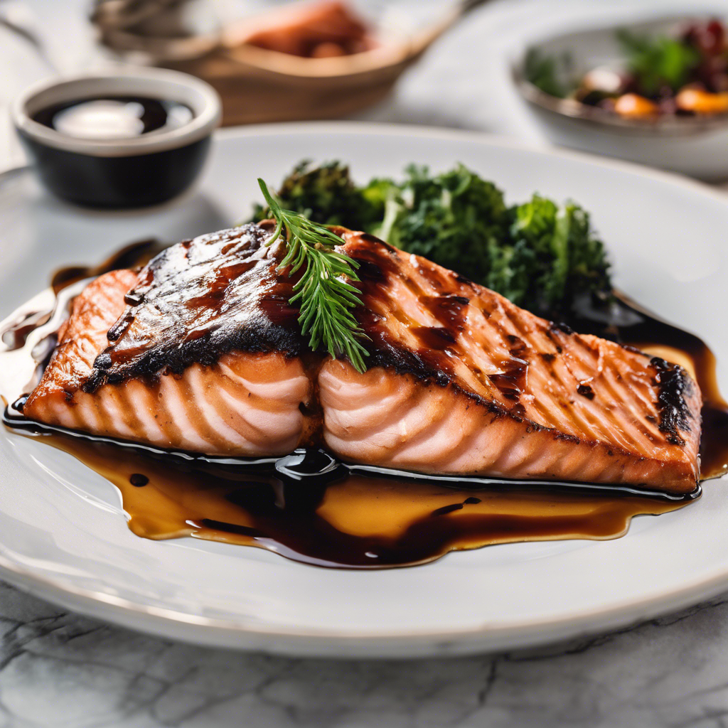 Grilled salmon topped with a balsamic glaze is a dish that perfectly balances the rich, smoky flavor of the fish with the sweet and tangy notes of the glaze. This culinary masterpiece has its roots in the Mediterranean region, where chefs have been using balsamic vinegar to enhance the flavors of their dishes for centuries. The dish gained popularity in the United States in the 1990s, as chefs began experimenting with different ways to prepare and present salmon. Today, this delectable dish can be found in top seafood restaurants across the country, with some of the best versions hailing from the Pacific Northwest, where fresh, wild-caught salmon is abundant. The key to a perfect grilled salmon with balsamic glaze lies in the quality of the fish and the balance of flavors in the glaze. When prepared with care and attention to detail, this dish is a true celebration of the sea.