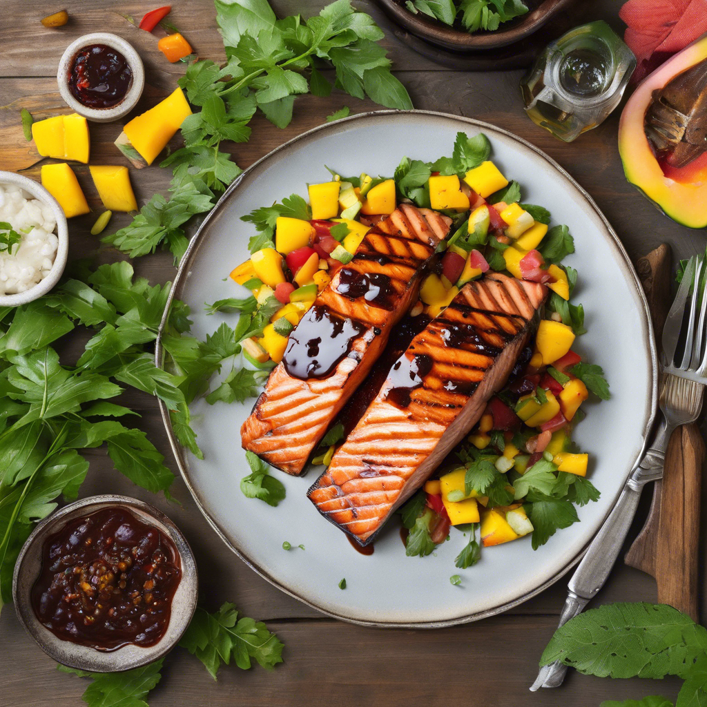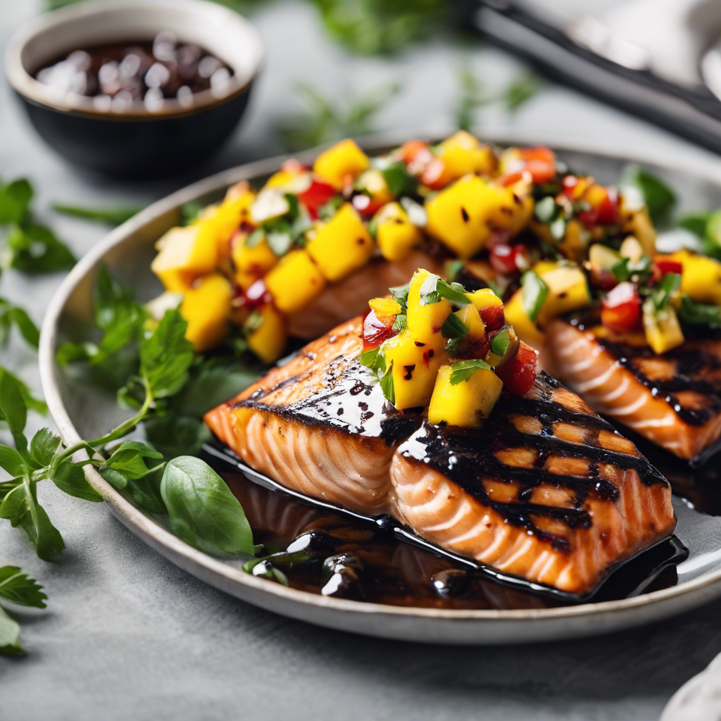 Grilled Salmon with Balsamic Glaze topped with a fresh mango salsa is a delightful fusion of flavors that has become a popular dish in modern cuisine. The dish originated from the creative minds of chefs looking to combine the richness of grilled salmon with the sweetness of mango and the tangy depth of balsamic glaze. This dish is a perfect blend of sweet, savory, and tangy flavors that tantalize the taste buds. It has gained popularity in coastal regions where fresh seafood is abundant, and the use of local ingredients like mangoes adds a tropical twist. Today, the best versions of this dish can be found in upscale seafood restaurants and fusion cuisine establishments. The key to getting this dish right lies in perfectly grilling the salmon to achieve a crispy exterior while maintaining a tender, flaky interior. The balsamic glaze should be rich and slightly sweet, complementing the natural flavors of the salmon. The fresh mango salsa should be vibrant and zesty, adding a refreshing contrast to the dish. While the traditional recipe calls for grilling the salmon, some chefs have also experimented with alternative methods such as pan-searing or baking, offering a different take on this delectable dish.