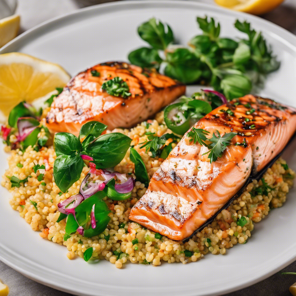 Grilled Salmon with Couscous Salad is a delightful dish that combines the rich, smoky flavor of grilled salmon with the light and refreshing taste of couscous salad. This dish has its roots in Mediterranean cuisine, where fresh seafood and vibrant salads are a staple. Renowned chefs like Yotam Ottolenghi have popularized this dish, infusing it with their own unique twists and flavors. The key to a perfect Grilled Salmon with Couscous Salad lies in the quality of the salmon, the seasoning, and the balance of flavors in the couscous salad. For the best version of this dish, head to coastal regions known for their fresh seafood, such as the Mediterranean or Pacific Northwest. The dish is best enjoyed during the summer months when the ingredients are at their peak freshness. Whether you're grilling the salmon to perfection or crafting the perfect couscous salad, attention to detail and fresh, high-quality ingredients are essential for a truly memorable dining experience.