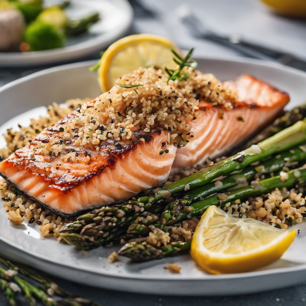 Grilled Salmon with Quinoa and Roasted Asparagus is a popular and healthy dish that has gained widespread popularity in recent years. The dish is a perfect blend of flavors and textures, with the rich, flaky salmon complementing the nutty quinoa and the tender, roasted asparagus. This dish has its roots in the Pacific Northwest, where fresh salmon is abundant and often grilled to perfection by local chefs. The dish has become a staple in many upscale restaurants, where chefs take pride in sourcing the freshest ingredients and preparing them with precision. The key to a perfect Grilled Salmon with Quinoa and Roasted Asparagus lies in the quality of the salmon, the proper grilling technique, and the seasoning of the quinoa. For a unique twist, some chefs may add a citrus glaze to the salmon or incorporate fresh herbs into the quinoa for added depth of flavor. Today, this dish can be found in top seafood restaurants across the country, but for the most authentic experience, head to the Pacific Northwest where the salmon is at its freshest.