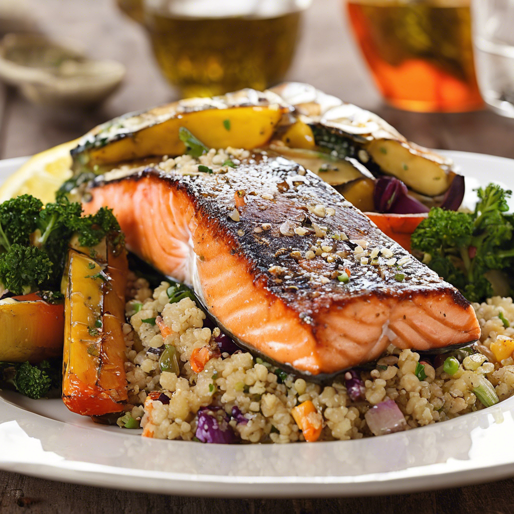 Grilled Salmon with Quinoa and Roasted Vegetables is a dish that has gained popularity in recent years due to its healthy and flavorful combination of ingredients. The dish has its roots in the Pacific Northwest, where fresh salmon is abundant and quinoa has become a staple grain. Chefs in this region have perfected the art of grilling salmon to perfection, while also incorporating locally sourced vegetables for a burst of flavor. The dish has become a favorite in health-conscious restaurants across the country, with variations that include different marinades for the salmon and a variety of roasted vegetables. The key to a successful dish lies in the quality of the salmon, the perfectly cooked quinoa, and the caramelized roasted vegetables. Today, the best versions of this dish can be found in farm-to-table restaurants that prioritize fresh, seasonal ingredients.