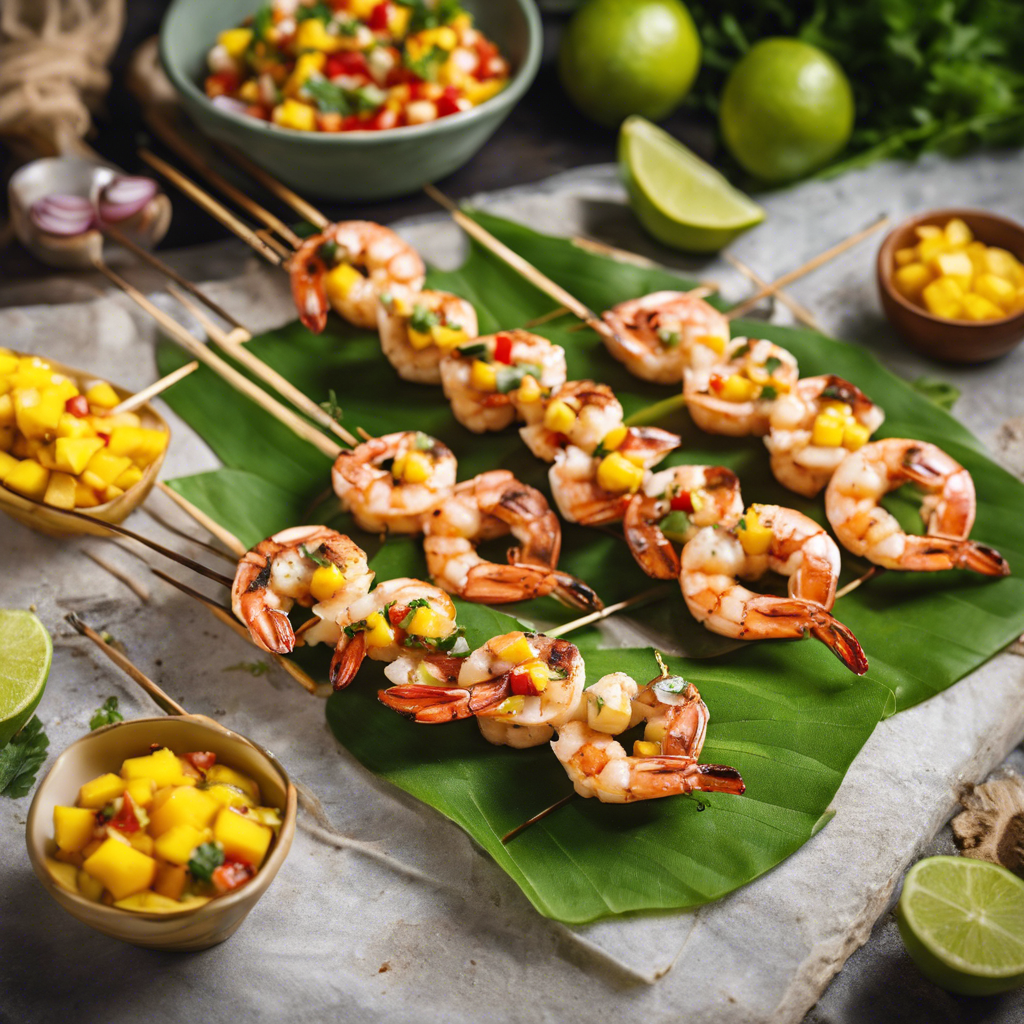 Grilled Shrimp Skewers with Mango Salsa is a vibrant and flavorful dish that has its roots in the coastal regions of Latin America and the Caribbean. The succulent shrimp is marinated in a zesty blend of spices and then grilled to perfection, imparting a smoky charred flavor. The accompanying mango salsa, with its sweet and tangy notes, adds a refreshing contrast to the savory shrimp. This dish has gained popularity in recent years, thanks to its fusion of tropical flavors and grilled seafood. Chefs in beachside restaurants and resorts have perfected the art of preparing these skewers, often using locally sourced shrimp and ripe, juicy mangoes to elevate the dish. For the best version of this dish, head to the coastal regions of Mexico, where the shrimp are fresh and the mangoes are at their peak. The key to getting this dish right lies in the balance of flavors – the shrimp should be perfectly seasoned and grilled, while the mango salsa should be vibrant and bursting with freshness. An alternative method for making this dish involves using a citrus-based marinade for the shrimp, which adds a zingy twist to the flavor profile. Whether you're enjoying this dish at a seaside restaurant or grilling it up at home, the combination of grilled shrimp and mango salsa is sure to transport you to a tropical paradise with every bite.
