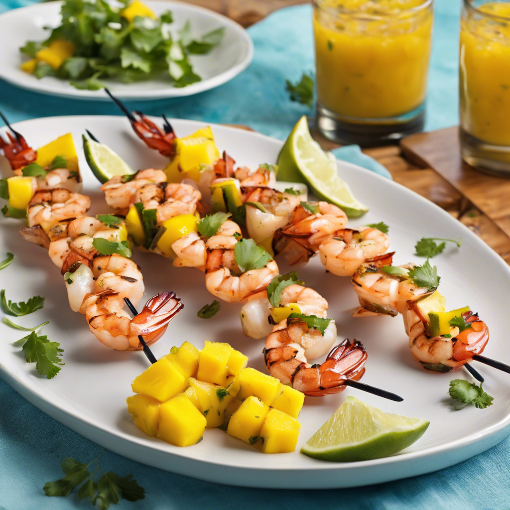 - Serve the grilled shrimp skewers with the mango salsa on the side, and enjoy!