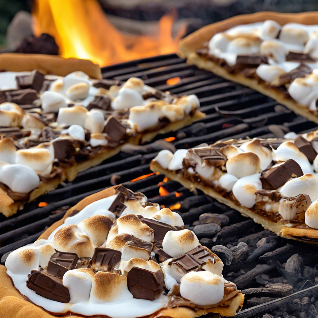 Grilled S'mores Pizza is a delightful twist on the classic campfire treat. This indulgent dessert pizza features a graham cracker crust, rich chocolate spread, gooey marshmallows, and sometimes a drizzle of caramel or a sprinkle of sea salt. The dish gained popularity in the United States, particularly in the Midwest and at summer camps, where it became a beloved fireside tradition. Chefs and home cooks alike have put their own spin on this sweet creation, experimenting with different chocolate varieties, marshmallow textures, and even adding unexpected toppings like fresh berries or crushed nuts. For the best version, seek out a pizzeria or restaurant with a wood-fired grill for that authentic, smoky flavor. Alternatively, try making it at home on a charcoal or gas grill for a fun and interactive dessert experience.