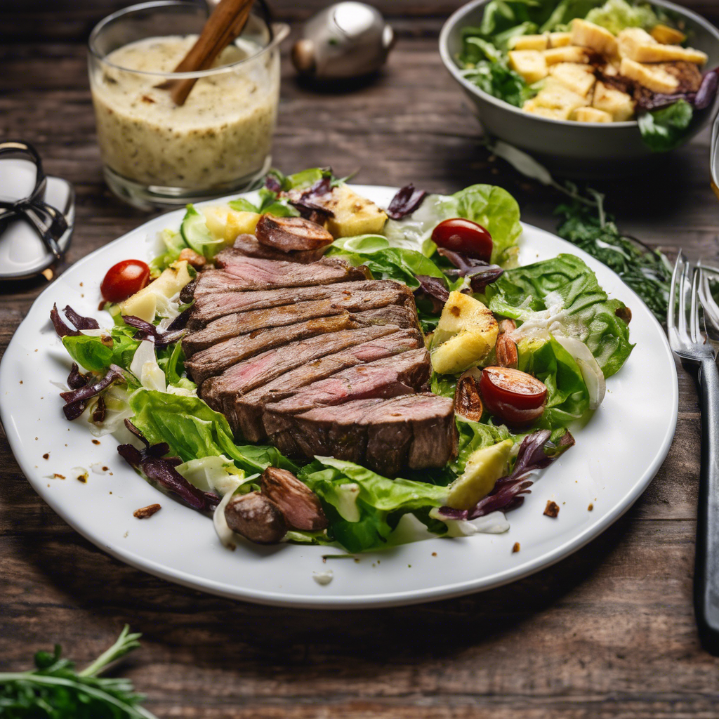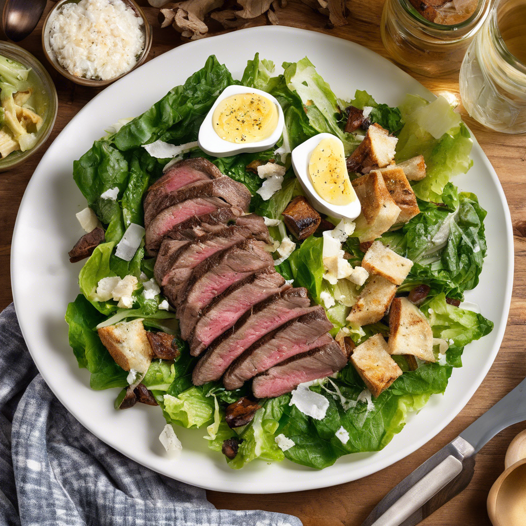 The Grilled Steak Caesar Salad is a classic dish that combines the smoky flavors of grilled steak with the crisp freshness of a Caesar salad. This dish has its origins in North America, where it became popular in the mid-20th century. The Caesar salad itself was created by Italian chef Caesar Cardini in Tijuana, Mexico, in the 1920s. The addition of grilled steak to the traditional Caesar salad was a natural evolution, adding a hearty and satisfying element to the dish. Today, the best versions of this dish can be found in upscale steakhouses and fine dining restaurants, where chefs use high-quality cuts of steak and fresh, vibrant greens to create a truly memorable meal. The key to a great Grilled Steak Caesar Salad lies in the quality of the ingredients - a perfectly grilled steak, crisp romaine lettuce, tangy Caesar dressing, and a generous sprinkling of Parmesan cheese. This dish is a favorite among meat lovers and salad enthusiasts alike, offering a perfect balance of flavors and textures. Whether enjoyed as a light lunch or a satisfying dinner, the Grilled Steak Caesar Salad continues to be a beloved classic on menus around the world.
