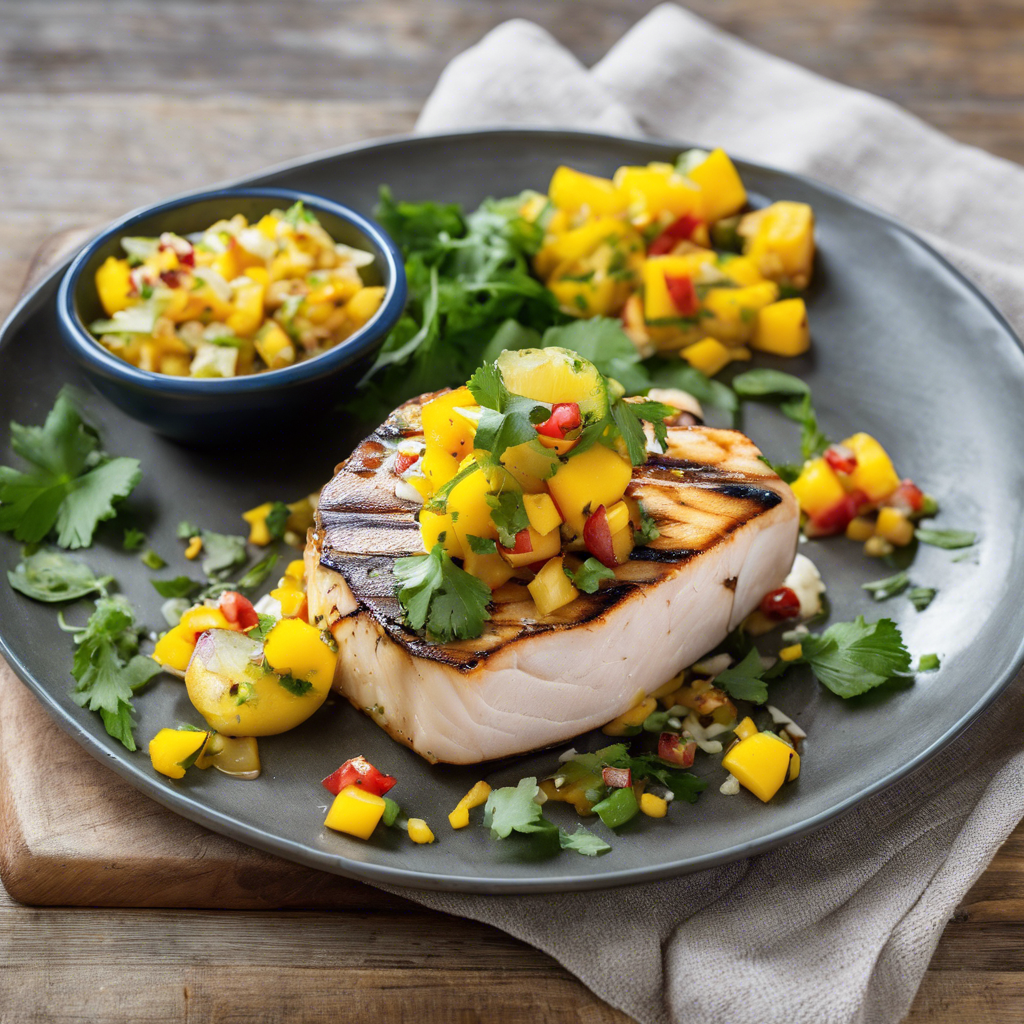 - Serve grilled swordfish topped with mango salsa. Enjoy!