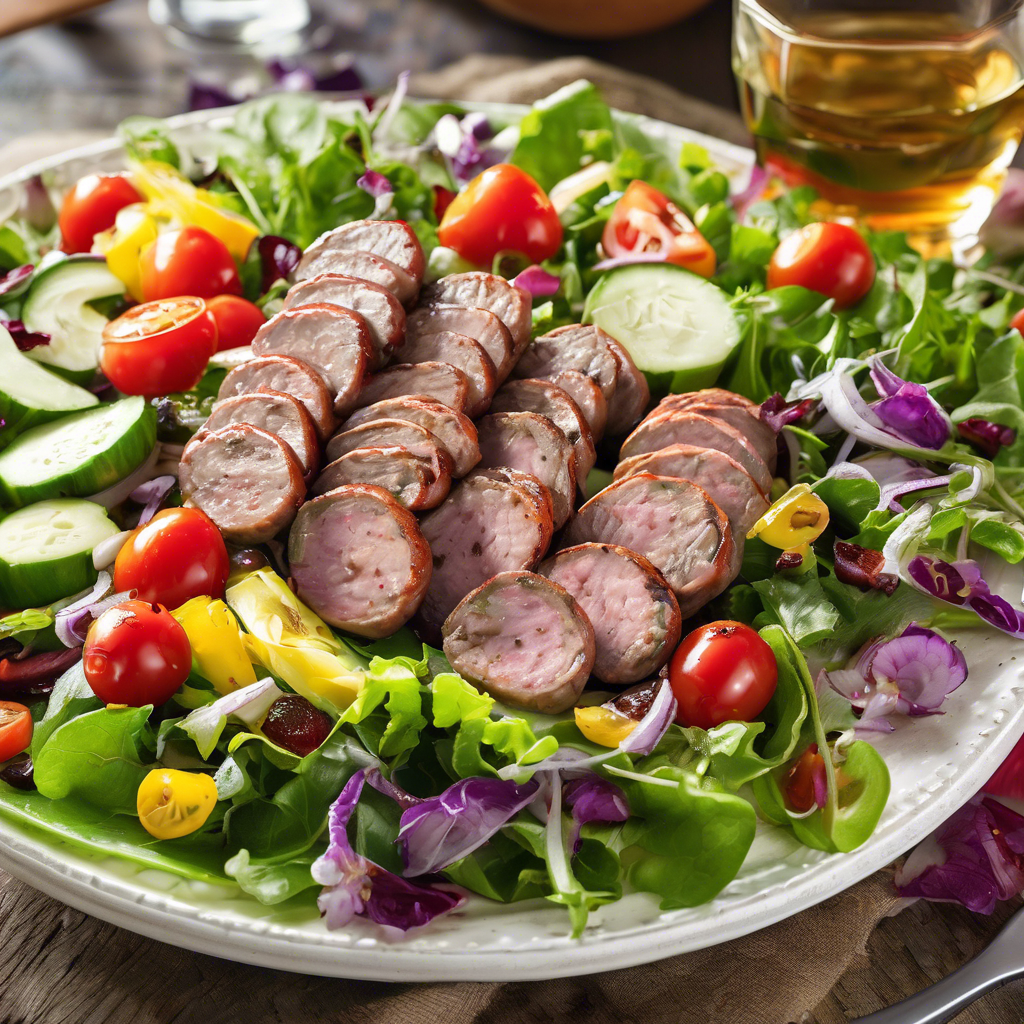 Grilled Turkey Sausage Salad is a delightful dish that combines the smoky flavors of grilled turkey sausage with the freshness of a vibrant salad. This dish has its roots in the Mediterranean region, where it is often enjoyed as a light and healthy meal. The succulent grilled turkey sausage adds a rich and savory element to the salad, while the crisp vegetables and zesty dressing provide a refreshing contrast. Chefs often use high-quality, lean turkey sausage and a variety of fresh, colorful vegetables to create a visually appealing and flavorful dish. For the best version of this dish, head to Mediterranean restaurants or look for chefs who specialize in healthy, flavorful cuisine. The key to making a delicious Grilled Turkey Sausage Salad lies in perfectly grilling the sausage to infuse it with smoky goodness and balancing the flavors of the salad with a tangy vinaigrette. Whether enjoyed as a main course or a side dish, this salad is a delightful way to savor the flavors of the Mediterranean.