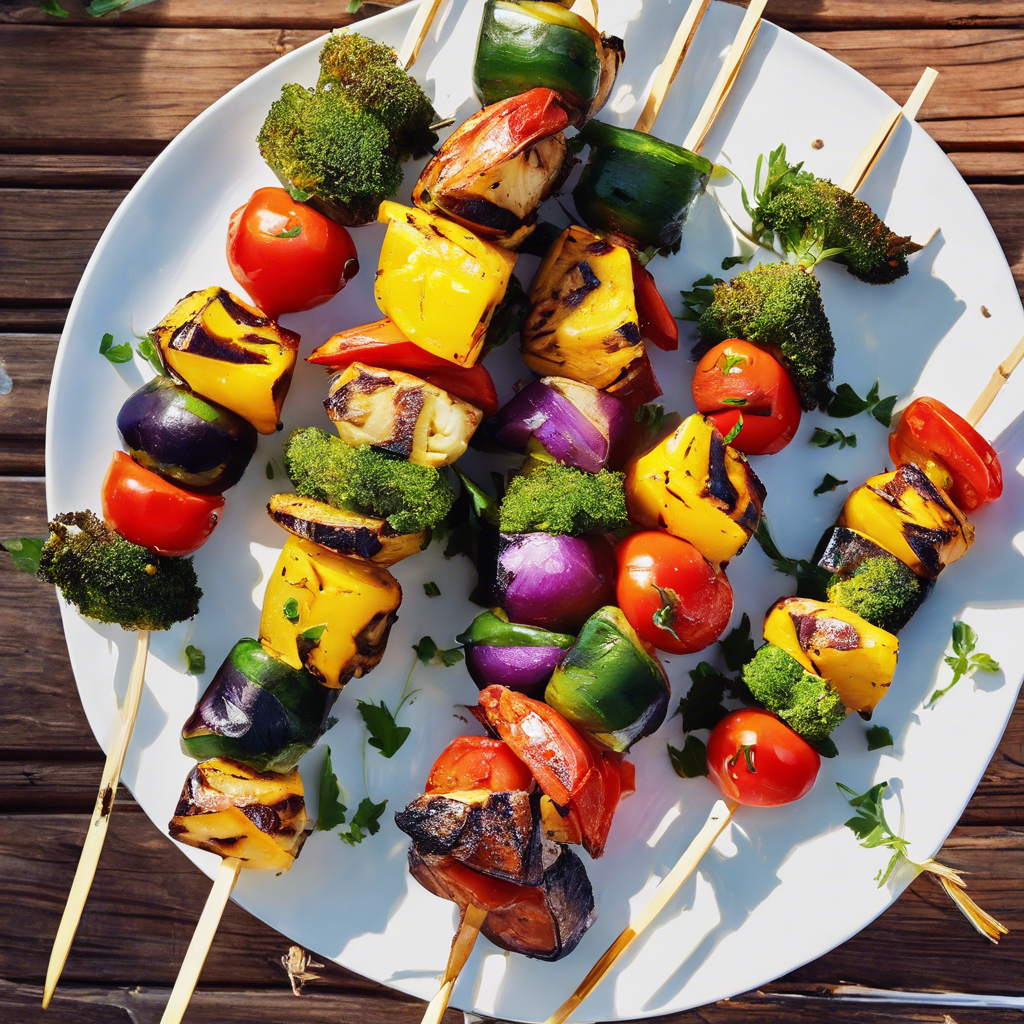 - Place the skewers on the preheated grill and cook for 8-10 minutes, turning occasionally, until the vegetables are tender and slightly charred.