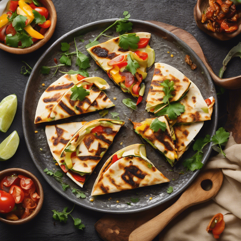 - Place a tortilla on a flat surface and sprinkle 1/4 cup of shredded cheese over half of the tortilla. Top with a portion of the grilled vegetables and a sprinkle of cilantro. Fold the tortilla in half to cover the filling.