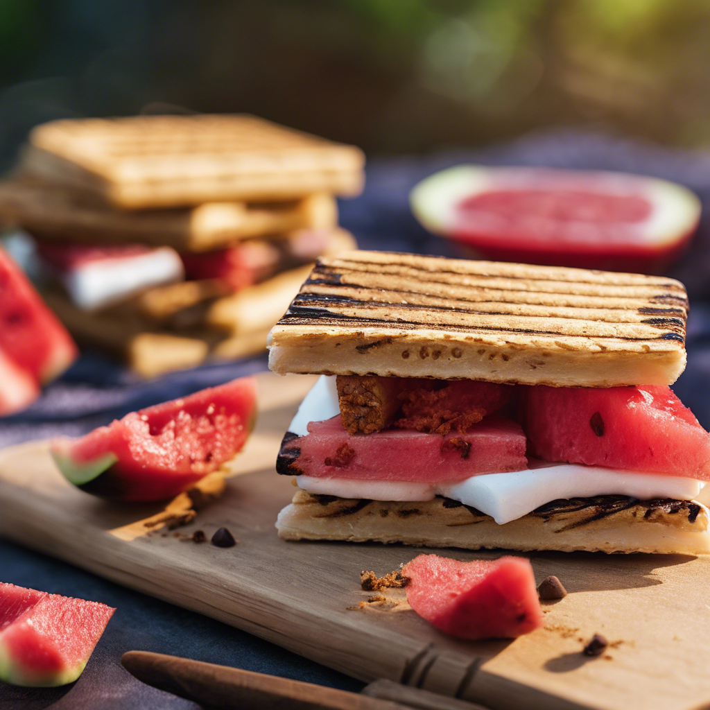 Grilled Watermelon S'mores are a unique twist on the classic campfire treat, blending the sweetness of watermelon with the gooey goodness of marshmallows and chocolate. This innovative dish has gained popularity in recent years, especially during the summer season and outdoor grilling events. Chefs and food enthusiasts have been experimenting with this unconventional combination, infusing the watermelon with smoky flavors from the grill while adding a delightful contrast to the traditional s'mores ingredients. While there isn't a specific origin story for Grilled Watermelon S'mores, they have been featured in various food festivals and trendy restaurants across the United States, particularly in regions known for their culinary creativity such as California and New York. For the best version of this dish, it's crucial to choose ripe, juicy watermelon and to grill it just enough to caramelize the natural sugars without losing its refreshing texture. The key is to balance the sweetness of the fruit with the richness of the chocolate and the fluffiness of the marshmallows, creating a harmonious blend of flavors and textures. Whether enjoyed at a hip urban eatery or a laid-back backyard barbecue, Grilled Watermelon S'mores offer a delightful and unexpected twist on a beloved dessert.