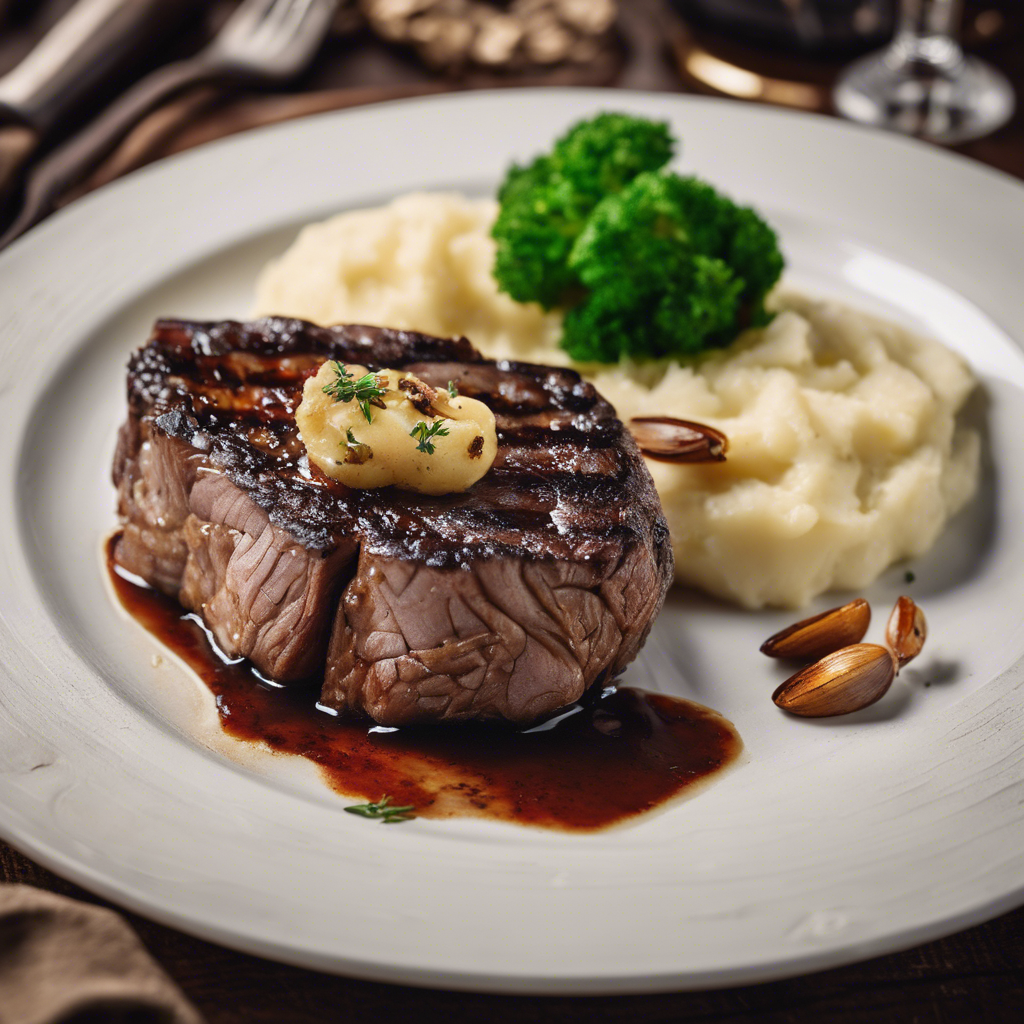 The history of Grilled Wild Boar Steak dates back to ancient times when wild boar was a staple in many cultures' diets. The dish has evolved over the years, with chefs adding their own unique twists to the recipe. The wild boar steak is marinated in a blend of herbs and spices, then grilled to perfection, resulting in a tender and flavorful dish. The roasted garlic mashed potatoes, served as a side, add a creamy and savory element to the meal. In Tuscany, Italy, renowned chefs have perfected the art of grilling wild boar steak, using traditional Tuscan seasonings to enhance the natural flavors of the meat. The dish has become a favorite among locals and tourists alike, with its rich and robust taste. Today, the best version of this dish can be found in upscale restaurants that specialize in wild game cuisine. The key to getting this dish right lies in the quality of the wild boar meat and the careful preparation of the garlic mashed potatoes. The combination of smoky grilled boar and creamy garlic-infused potatoes creates a truly unforgettable dining experience.