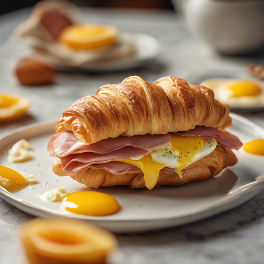The Ham, Egg, and Cheese Croissant is a classic breakfast sandwich that has its origins in France. This delectable dish features a flaky, buttery croissant filled with savory ham, a perfectly cooked egg, and gooey melted cheese. The combination of flavors and textures makes it a beloved choice for breakfast or brunch. In France, this dish is often enjoyed at quaint cafes and bakeries, where skilled chefs meticulously prepare each component to perfection. The croissant, a staple of French cuisine, is the star of the show, providing a light and airy base for the hearty fillings. Today, the best versions of this dish can be found in artisanal bakeries and brunch spots that prioritize quality ingredients and expert craftsmanship. The key to a stellar Ham, Egg, and Cheese Croissant lies in the quality of the croissant, the freshness of the ingredients, and the precise cooking of the egg. While the traditional recipe calls for ham, egg, and cheese, there are also variations that incorporate additional ingredients such as spinach, tomatoes, or avocado for a unique twist. Whether enjoyed in a charming French bistro or whipped up at home, the Ham, Egg, and Cheese Croissant is a timeless breakfast delight that continues to captivate food enthusiasts around the world.