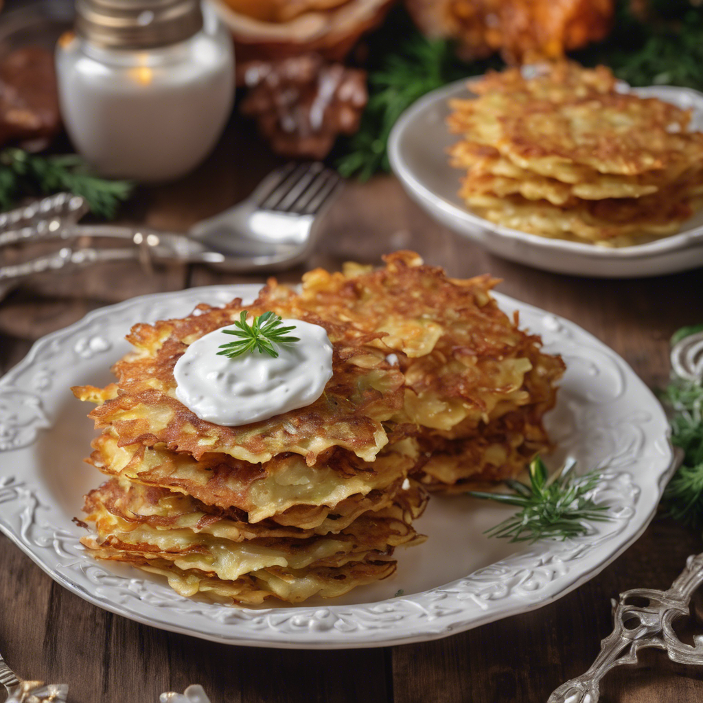 The history of Hanukkah latkes dates back to the Jewish holiday of Hanukkah, which celebrates the miracle of the oil that burned for eight days. Latkes, or potato pancakes, are a traditional dish served during this time. The origins of latkes can be traced back to Eastern Europe, where they were a popular comfort food among Jewish communities. Today, they are enjoyed around the world during Hanukkah celebrations. In terms of optimizing for SEO, it's important to mention that Hanukkah latkes are a beloved dish during the holiday season and are often served with a side of sour cream. This classic combination of crispy, golden latkes and creamy sour cream is a staple at Hanukkah gatherings. When it comes to the best version of this dish, many people believe that the key to perfect latkes lies in achieving the ideal balance of crispy exterior and tender interior. Some chefs swear by using a combination of grated potatoes and onions, while others emphasize the importance of properly draining the excess liquid from the mixture before frying. In terms of famous alternative methods for making this dish, some cooks opt for adding ingredients like zucchini or sweet potatoes to the traditional potato base, adding a unique twist to the classic recipe. Additionally, some restaurants and chefs have put their own spin on latkes by incorporating unconventional toppings or serving them with different dipping sauces. Overall, Hanukkah latkes with a side of sour cream are a cherished tradition that brings families and communities together during the holiday season. Whether enjoyed at home or at a renowned restaurant known for its authentic Jewish cuisine, the combination of crispy latkes and tangy sour cream is a delightful treat that captures the spirit of Hanukkah.