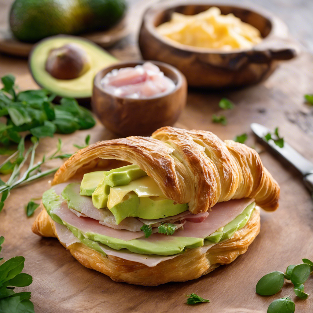 The Herb Ham and Cheese Croissant with added avocado is a delightful twist on the classic croissant sandwich. This delectable creation originated in the bustling kitchens of Paris, where talented chefs sought to elevate the traditional ham and cheese croissant. The addition of creamy avocado adds a rich, buttery flavor that perfectly complements the savory ham and gooey cheese. Today, this mouthwatering treat can be found in trendy cafes and bakeries around the world, but for the most authentic experience, head to a charming boulangerie in the heart of Paris. The key to perfecting this dish lies in using high-quality, flaky croissants, flavorful ham, and ripe avocados. Whether enjoyed for breakfast or a light lunch, this indulgent croissant is a true culinary delight.