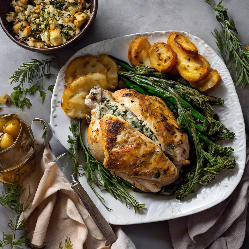 The history of Herb Roasted Chicken stuffed with spinach and feta cheese can be traced back to the Mediterranean region, where the combination of fresh herbs, tender chicken, and flavorful cheese has been a culinary tradition for centuries. This dish has been perfected by skilled chefs in Greece, Italy, and the Middle East, where it is often served as a hearty and satisfying meal for family gatherings and special occasions. The best version of this dish can be found in traditional Greek and Italian restaurants, where the chefs take pride in using the freshest ingredients and time-honored cooking techniques to bring out the rich flavors of the chicken, spinach, and feta cheese. The key to making this dish shine is to use high-quality, organic chicken, and to season it generously with a blend of aromatic herbs such as rosemary, thyme, and oregano. The spinach and feta cheese stuffing adds a creamy and tangy element to the dish, creating a perfect balance of flavors and textures. For a unique twist on this classic recipe, some chefs also incorporate sun-dried tomatoes, olives, or pine nuts into the stuffing, adding a burst of Mediterranean flavors to the dish. Whether enjoyed at a cozy family dinner or a festive celebration, Herb Roasted Chicken stuffed with spinach and feta cheese is a timeless dish that continues to delight food lovers around the world.