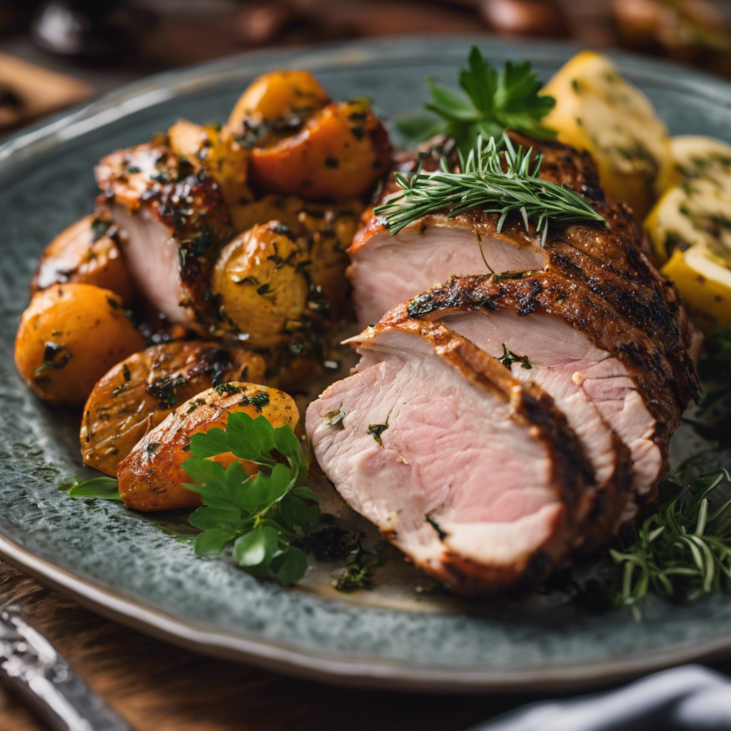 Herb Roasted Pork Tenderloin is a classic dish that has been enjoyed for generations. This succulent and flavorful dish has its roots in traditional European cuisine, where pork has long been a staple. The dish gained popularity in the United States as well, with chefs and home cooks adding their own unique twists to the recipe. The use of fresh herbs such as rosemary, thyme, and sage, along with a perfect balance of seasoning, is crucial to achieving the dish's signature taste. Today, the best versions of this dish can be found in top-rated restaurants and kitchens that prioritize using high-quality, locally sourced pork and fresh herbs. Whether it's served with roasted vegetables or a savory sauce, Herb Roasted Pork Tenderloin continues to be a beloved choice for a satisfying and elegant meal.