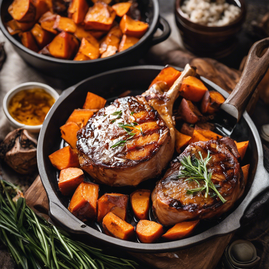 The history of Honey Glazed Dutch Oven Pork Chops with a side of roasted sweet potatoes can be traced back to traditional Dutch oven cooking methods, where pork chops were slow-cooked to perfection. The dish has evolved over time, with chefs adding a sweet and savory honey glaze to enhance the flavor of the pork chops. The addition of roasted sweet potatoes as a side dish complements the richness of the pork, creating a well-balanced and satisfying meal. This classic combination is popular in regions known for their hearty and comforting cuisine, such as the American Midwest and Southern United States. Today, the best version of this dish can be found in family-owned restaurants and local diners that specialize in home-style cooking. The key to getting this dish right lies in the quality of the pork chops and the careful caramelization of the honey glaze. For a unique twist, some chefs also incorporate spices like cinnamon and nutmeg into the roasted sweet potatoes for an extra layer of flavor.