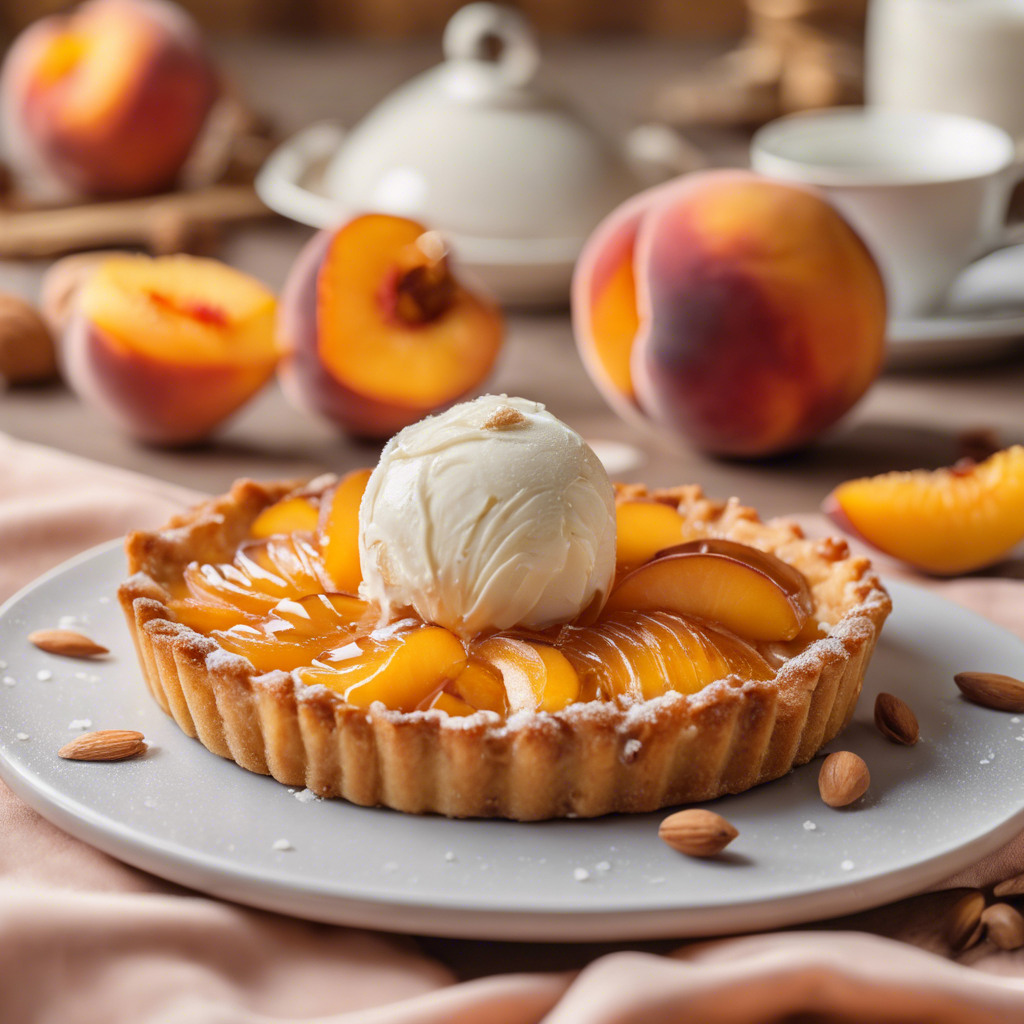 The Honey Glazed Peach and Almond Tart is a delightful dessert that combines the sweetness of ripe peaches with the nuttiness of almonds, all encased in a buttery, flaky pastry. This delectable treat is often served with a generous scoop of creamy vanilla ice cream, creating a perfect balance of flavors and textures. Originating in the southern regions of France, this dessert has been a favorite among pastry chefs for centuries. The combination of fresh, juicy peaches, fragrant honey, and crunchy almonds creates a symphony of flavors that is hard to resist. One of the best places to savor this delectable tart is in the charming patisseries of Provence, where skilled bakers use locally sourced ingredients to create the perfect balance of sweetness and tartness in the peaches, and the ideal crunch in the almond filling. To make the perfect Honey Glazed Peach and Almond Tart, it's crucial to use ripe, juicy peaches and high-quality almonds to ensure a burst of flavor in every bite. The honey glaze adds a touch of sweetness and shine to the tart, while the vanilla ice cream provides a cool, creamy contrast to the warm, nutty tart. For a unique twist on this classic dessert, some chefs also incorporate a hint of lavender or thyme into the honey glaze, adding a subtle floral note that elevates the overall experience. Whether enjoyed in a quaint French patisserie or homemade in your own kitchen, the Honey Glazed Peach and Almond Tart with a scoop of vanilla ice cream is a timeless indulgence that never fails to impress.