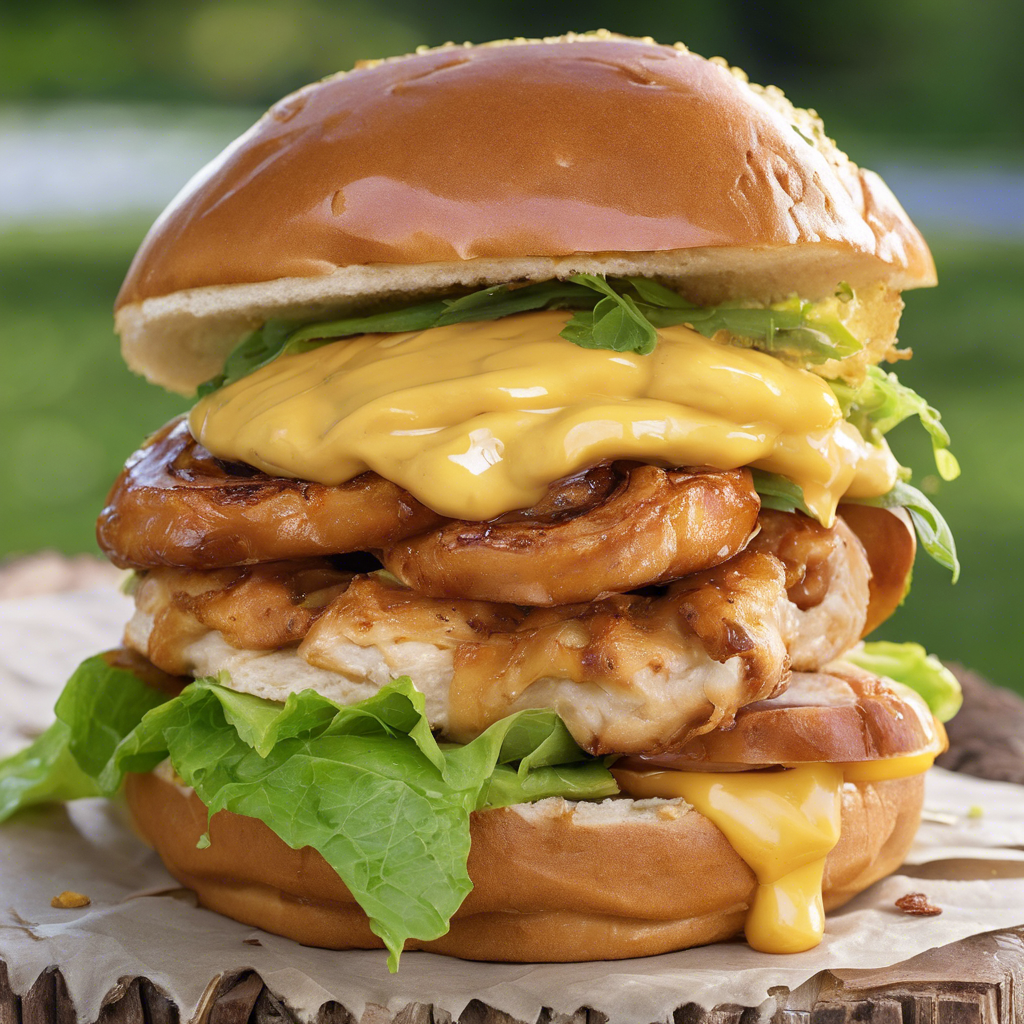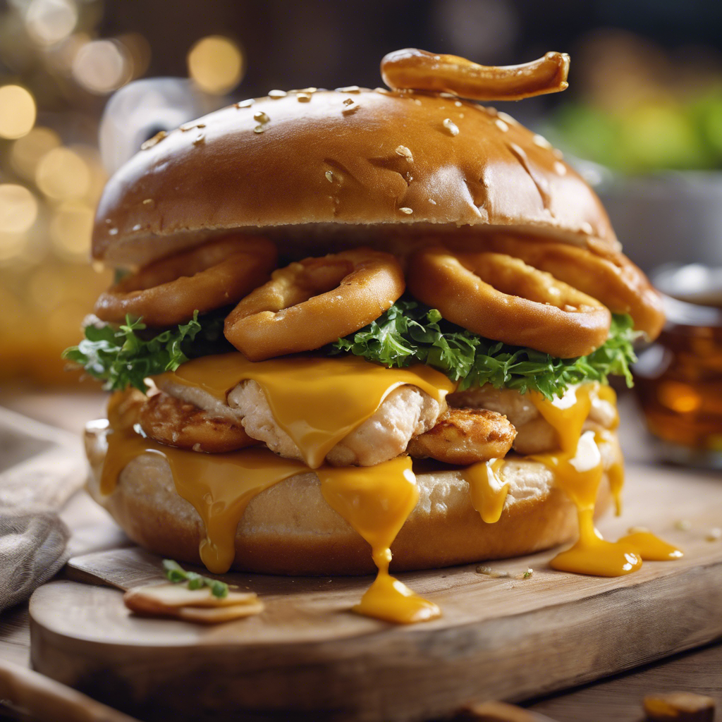 The Honey Mustard Chicken Sandwich on a pretzel bun has a rich history dating back to the 1980s. This delectable creation is a fusion of American and German culinary influences, with the pretzel bun adding a unique twist to the classic chicken sandwich. Renowned chefs in the Midwest, particularly in cities like Chicago and Milwaukee, have been credited with popularizing this dish. The key to a perfect Honey Mustard Chicken Sandwich lies in the balance of sweet and tangy honey mustard sauce, paired with tender, juicy chicken, all sandwiched between a soft yet slightly chewy pretzel bun. For the best version of this dish, head to local gastropubs or breweries known for their artisanal sandwiches. The pretzel bun's distinct flavor and texture elevate the sandwich, making it a favorite among food enthusiasts.