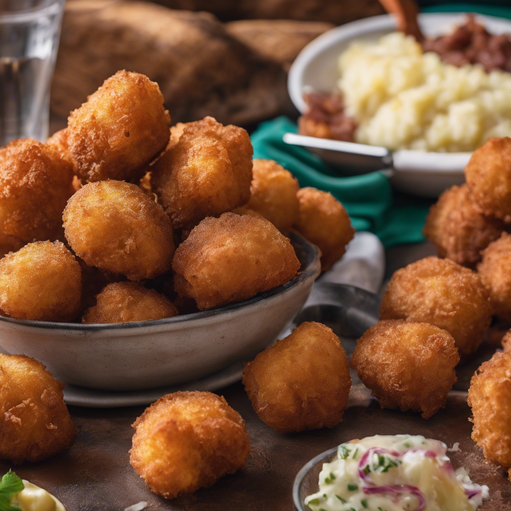 Hushpuppies are a beloved Southern American dish with a rich history dating back to the early 18th century. Legend has it that the name "hushpuppies" originated from hunters and fishermen who would fry cornmeal batter to feed to their dogs, telling them to "hush, puppies" as they tossed them the crispy morsels. This savory, deep-fried cornmeal fritter is a staple in Southern cuisine, often served as a side dish alongside fried fish or barbecue. Chefs and home cooks alike have put their own spin on hushpuppies, adding ingredients like onions, jalapeños, and cheese for extra flavor. Today, the best hushpuppies can be found in renowned Southern restaurants and seafood shacks, where they are fried to golden perfection and served piping hot. For an authentic taste, it's crucial to get the texture and seasoning just right, ensuring a crispy exterior and a soft, fluffy interior. Whether enjoyed with a dollop of honey butter or dipped in tangy remoulade, hushpuppies continue to be a cherished comfort food across the South.