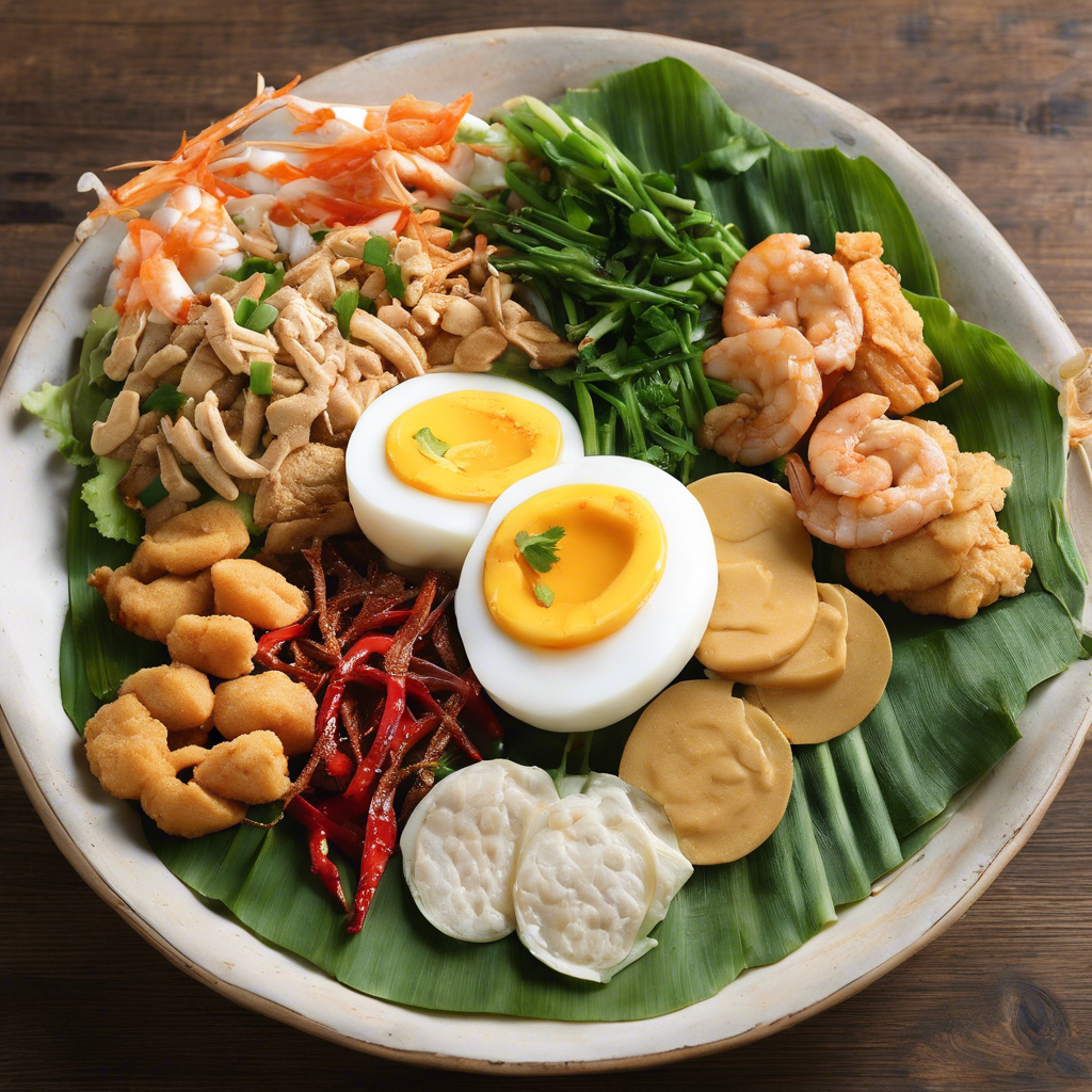 Indonesian Gado Gado is a traditional salad dish hailing from Indonesia, known for its vibrant mix of flavors and textures. This beloved dish features a colorful array of blanched vegetables, such as cabbage, bean sprouts, and spinach, topped with a rich and creamy peanut sauce. Gado Gado's origins can be traced back to the streets of Jakarta, where it was popularized by local street vendors and home cooks. Today, this dish can be found in restaurants and warungs (small eateries) across Indonesia, with each region adding its own unique twist. The key to a delicious Gado Gado lies in the peanut sauce, which should strike the perfect balance between sweet, savory, and spicy. For an authentic experience, seek out renowned chefs or street food stalls in Jakarta or Bali, where Gado Gado is celebrated as a culinary gem. Whether enjoyed as a light lunch or a side dish, Indonesian Gado Gado is a delightful exploration of Indonesian flavors and a must-try for any food enthusiast.