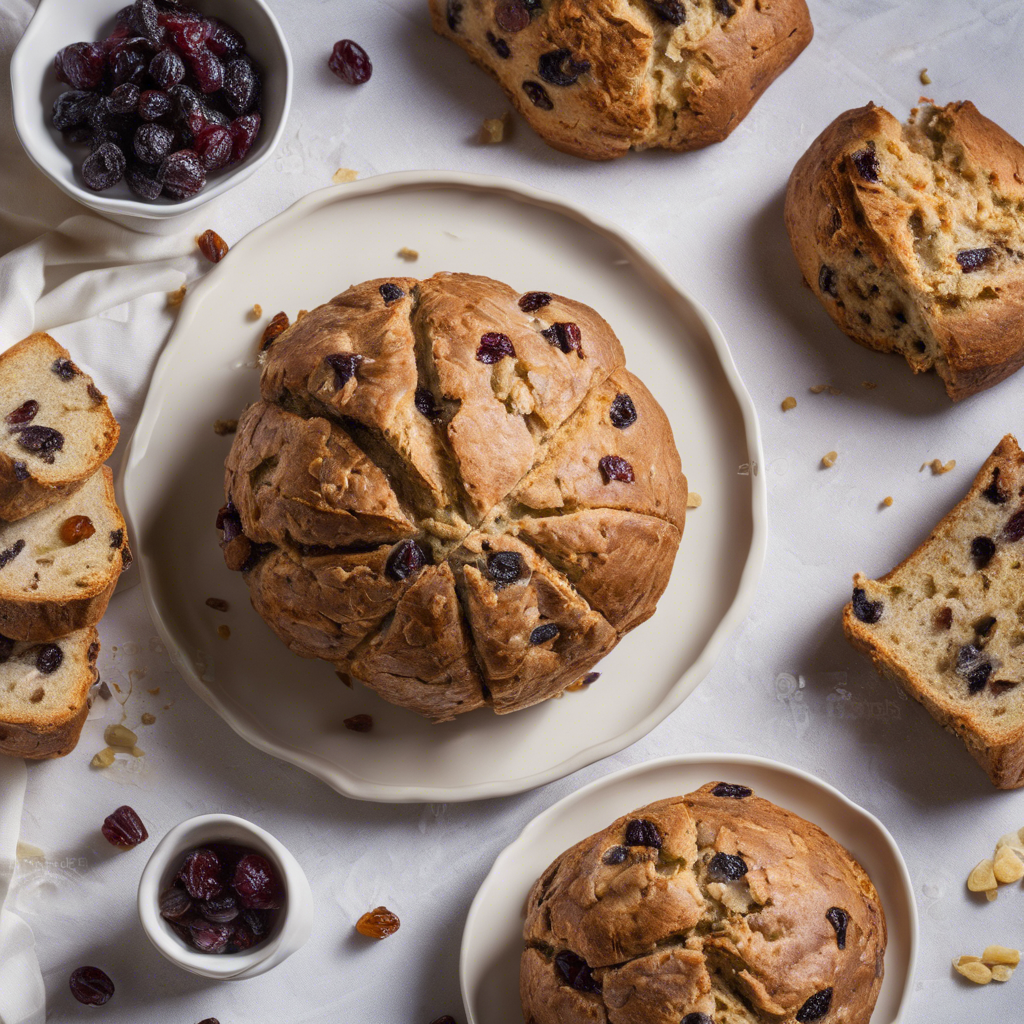 Irish Soda Bread with added raisins is a delightful twist on the traditional Irish staple. This beloved bread has a rich history dating back to the 1800s when baking soda became a popular leavening agent in Ireland. The addition of raisins brings a touch of sweetness to the hearty, dense bread, making it a favorite for breakfast or tea time. In Ireland, this bread is a cherished part of the culinary heritage, often enjoyed with a generous spread of butter. Many renowned chefs and bakeries across the country have perfected the art of making this classic treat, with each region adding its own unique touch to the recipe. Today, the best versions of Irish Soda Bread with raisins can be found in quaint Irish bakeries and cozy tearooms, where the aroma of freshly baked bread fills the air. The key to achieving the perfect texture and flavor lies in using high-quality flour, buttermilk, and plump, juicy raisins. Some alternative methods for making this dish include adding a hint of cinnamon or nutmeg for an extra layer of warmth and flavor. Whether enjoyed fresh out of the oven or toasted with a dollop of jam, Irish Soda Bread with raisins is a timeless delight that continues to bring comfort and joy to tables around the world.