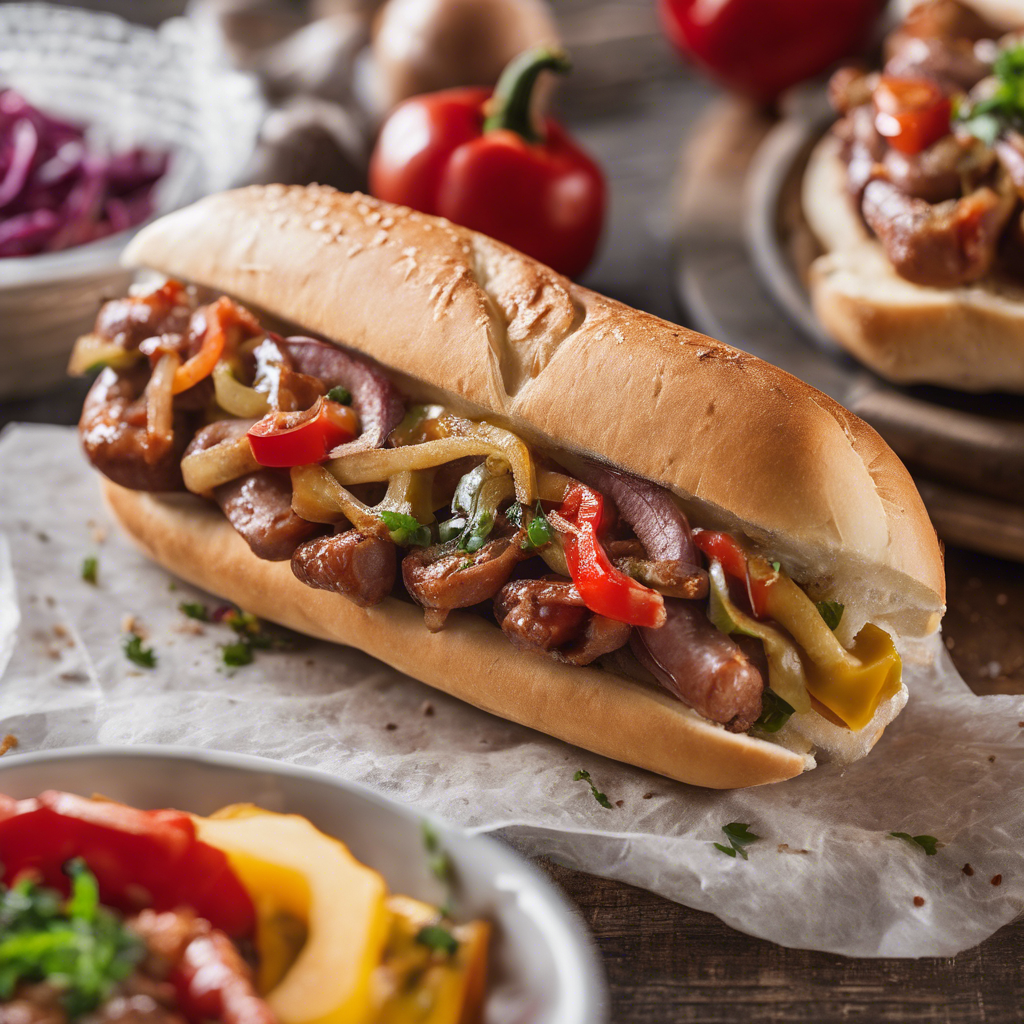 The Italian Sausage and Pepper Hoagie, with the addition of caramelized onions, is a beloved classic in Italian-American cuisine. Originating in the streets of Philadelphia, this hearty sandwich is a flavorful combination of sweet and savory. The sizzling sausages, vibrant peppers, and rich caramelized onions are nestled in a soft hoagie roll, creating a symphony of flavors and textures. Renowned chefs like Mario Batali and Lidia Bastianich have popularized this dish, infusing it with their own unique twists. The dish has its roots in the Italian immigrant communities of the Northeastern United States, where it became a staple in local eateries and family kitchens. Today, the best versions of this dish can be found in authentic Italian delis and restaurants in cities like Philadelphia, New York, and Boston. The key to a perfect Italian Sausage and Pepper Hoagie lies in the quality of the ingredients - from the fennel-infused Italian sausages to the sweet and tangy peppers, and of course, the perfectly caramelized onions. For a delicious alternative, some chefs recommend slow-cooking the sausages and peppers in a rich tomato sauce before piling them onto the hoagie roll, adding an extra depth of flavor to the dish. Whether enjoyed at a bustling street fair or a cozy neighborhood deli, the Italian Sausage and Pepper Hoagie with caramelized onions is a true celebration of Italian culinary tradition.