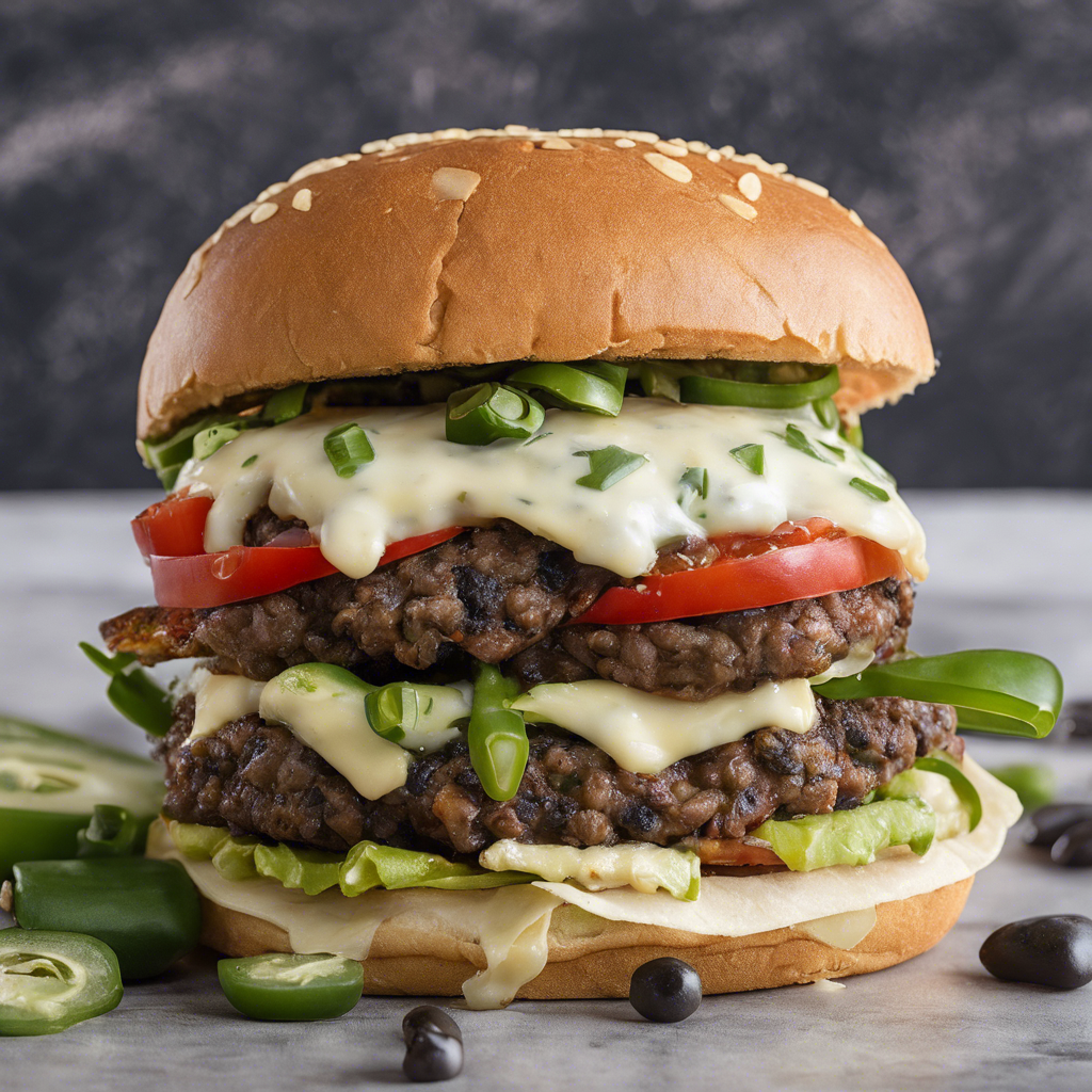 The Jalapeno Pepper Jack Burger with a black bean patty is a modern twist on the classic burger, catering to the growing demand for vegetarian options. This innovative creation originated in the bustling culinary scene of California, where chefs sought to elevate the traditional burger with a meatless alternative. The spicy kick of jalapenos and the creamy melt of pepper jack cheese perfectly complement the hearty black bean patty, creating a flavor explosion that satisfies even the most discerning palates. Today, the best versions of this dish can be found in trendy, health-conscious eateries across the country, where it has become a staple for vegetarians and burger enthusiasts alike. The key to perfecting this dish lies in the seasoning of the black bean patty, ensuring it's packed with robust flavors and a satisfying texture that rivals its meat-based counterpart. Whether grilled to perfection or pan-fried for a crispy exterior, the black bean patty is the star of this delectable creation, making it a must-try for anyone seeking a vegetarian burger with a spicy twist.