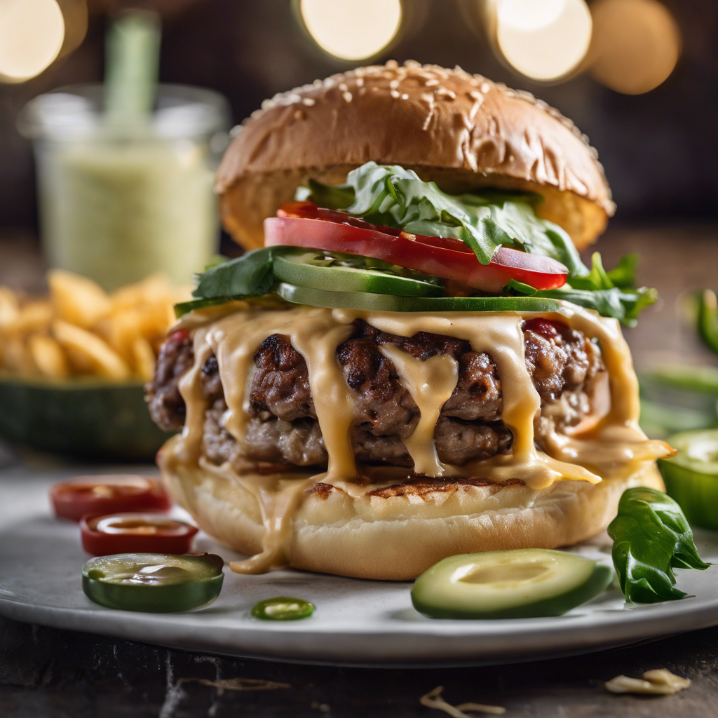 The Jalapeno Pepper Jack Burger with a spicy chipotle aioli is a fiery twist on the classic American burger. Originating in the Southwest, this burger has become a staple in many restaurants across the country. The juicy patty is infused with diced jalapenos and topped with melted pepper jack cheese, adding a kick of heat to every bite. The real star of the show is the spicy chipotle aioli, a creamy and zesty sauce that elevates the burger to new levels of flavor. Chefs in Texas and New Mexico are known for perfecting this dish, using locally sourced ingredients to create a truly authentic experience. For the best version of this dish, head to renowned burger joints in these regions. The key to nailing this burger is the balance of heat from the jalapenos and the creaminess of the chipotle aioli. It's a must-try for spice lovers and burger enthusiasts alike.