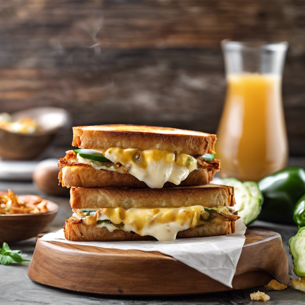 The Jalapeno Popper Grilled Cheese is a modern twist on the classic grilled cheese sandwich, featuring a spicy kick and creamy texture. This delectable dish originated in the United States, where it quickly gained popularity for its fusion of flavors. Chefs across the country have put their own spin on this dish, incorporating various cheeses, jalapenos, and sometimes bacon or other savory ingredients. The best versions of this dish can be found in trendy urban eateries and food trucks, particularly in regions known for their culinary innovation, such as California and New York. The key to a perfect Jalapeno Popper Grilled Cheese lies in the balance of heat from the jalapenos and the richness of the cheese, creating a harmonious blend of flavors. For those looking to recreate this dish at home, it's essential to use quality ingredients and pay attention to the cooking technique to achieve the ideal gooey, crispy, and spicy result. Whether enjoyed as a comforting lunch or a late-night snack, the Jalapeno Popper Grilled Cheese is a must-try for food enthusiasts seeking a tantalizing flavor experience.