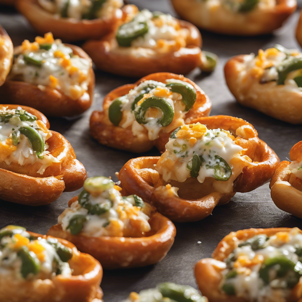 Jalapeno Popper Stuffed Pretzel Bites are a delicious and addictive snack that combines the flavors of spicy jalapenos, creamy cheese, and savory pretzel dough. This popular dish has its origins in the United States, where it has become a favorite at parties, sports events, and casual dining establishments. The history of Jalapeno Popper Stuffed Pretzel Bites can be traced back to inventive chefs and food enthusiasts who sought to create a unique twist on traditional pretzels and jalapeno poppers. The dish gained popularity for its irresistible combination of textures and flavors, with the heat of the jalapenos balanced by the richness of the cheese and the satisfying chewiness of the pretzel dough. Today, Jalapeno Popper Stuffed Pretzel Bites can be found on the menus of many restaurants and food trucks across the country, particularly in regions known for their love of bold and spicy flavors. Some chefs have put their own spin on the dish by adding ingredients like bacon, ranch dressing, or different types of cheese to create new and exciting variations. For those looking to experience the best version of this dish, seeking out a restaurant or bakery known for their expertise in pretzel making is key. The most important elements of the recipe include using high-quality, fresh jalapenos, a flavorful cheese filling, and perfectly baked pretzel dough that is golden brown and slightly crispy on the outside, yet soft and chewy on the inside. While the traditional method of making Jalapeno Popper Stuffed Pretzel Bites involves stuffing bite-sized portions of pretzel dough with a jalapeno and cheese mixture before baking, some creative cooks have also experimented with alternative methods, such as wrapping the jalapeno and cheese filling in pretzel dough to create a larger, more substantial snack. Whether enjoyed as a party appetizer, a game day snack, or a fun treat for any occasion, Jalapeno Popper Stuffed Pretzel Bites continue to delight food lovers with their irresistible combination of spicy, cheesy, and doughy goodness.