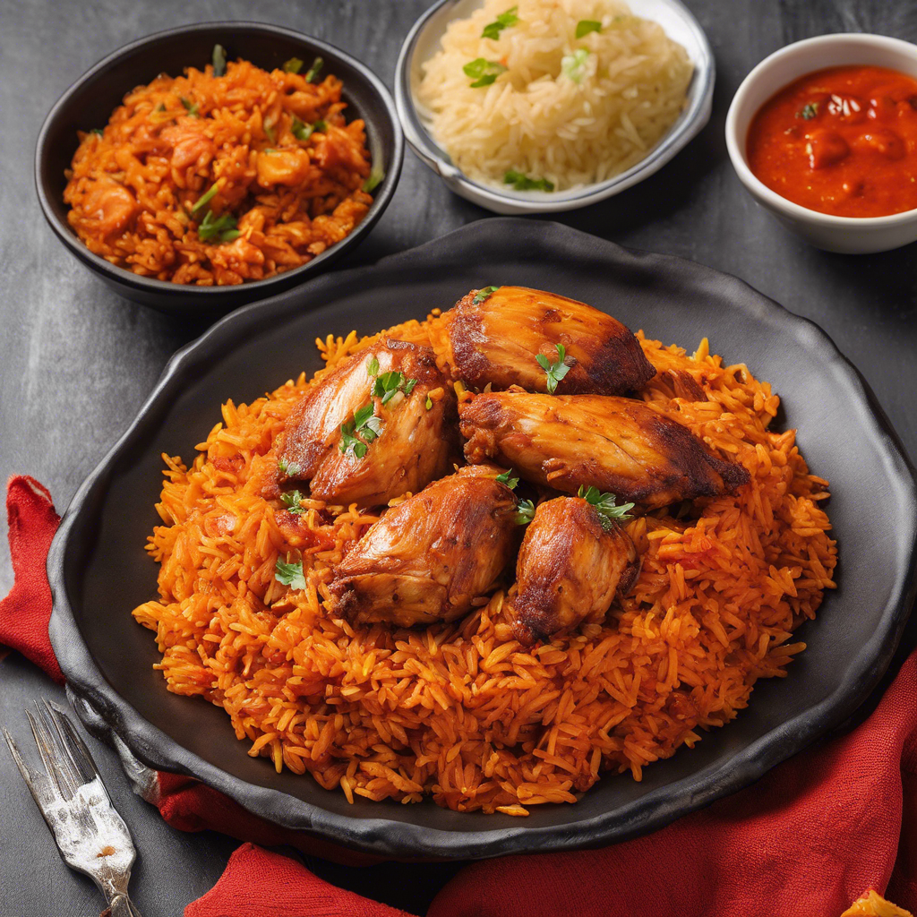 Jollof Rice with Chicken is a popular West African dish known for its vibrant flavors and rich history. Originating from the Wolof people of Senegal, it has evolved into a beloved staple across the region, with each country adding its own unique twist. The dish typically features long-grain rice, tomatoes, onions, and a blend of aromatic spices like thyme, curry, and cayenne pepper. Succulent pieces of chicken are often added to enhance the dish's savory profile. Renowned chefs like Nigerian food enthusiast, Chef Fregz, have put their own spin on this classic, elevating it to new heights. In Nigeria, Ghana, and Senegal, Jollof Rice with Chicken is a centerpiece of celebrations and gatherings, showcasing the diverse culinary heritage of West Africa. For an authentic experience, seek out local eateries or home cooks who specialize in this iconic dish. The key to a perfect Jollof Rice with Chicken lies in achieving the ideal balance of flavors and textures, ensuring the rice is fluffy and infused with the essence of the spices. While the traditional method involves cooking the rice in a flavorful tomato-based sauce, some chefs prefer to grill or smoke the chicken before adding it to the dish, imparting a tantalizing smokiness. Whether enjoyed at a bustling market in Lagos or a cozy restaurant in Accra, Jollof Rice with Chicken is a testament to the rich culinary heritage of West Africa.