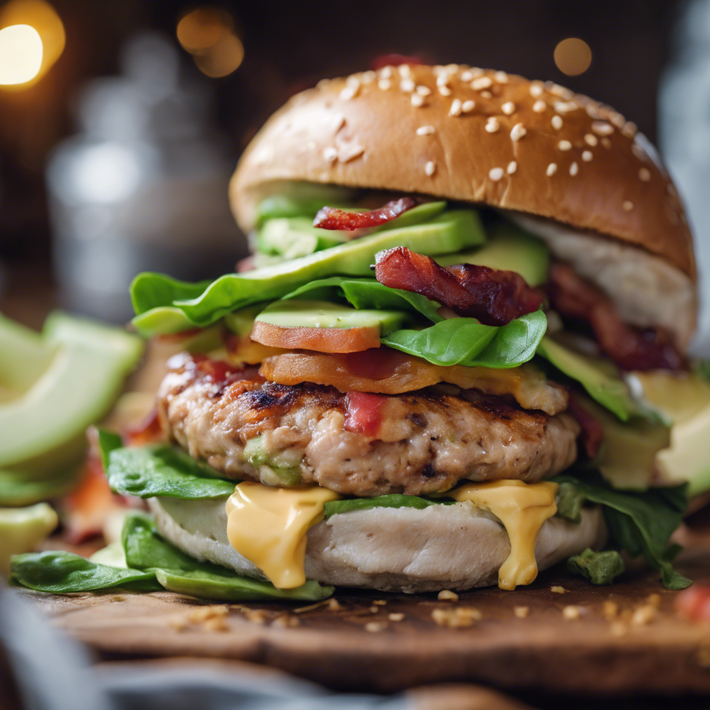 The Juicy Turkey Burger with avocado and bacon has a rich history rooted in the fusion of flavors and textures. This delectable dish gained popularity in the 21st century as a healthier alternative to traditional beef burgers. Renowned chefs across the United States, particularly in California and the Southwest, have elevated this burger to gourmet status by incorporating fresh, locally-sourced ingredients. The creamy avocado and crispy bacon perfectly complement the juicy turkey patty, creating a harmonious blend of savory and creamy flavors. Today, the best versions of this dish can be found in upscale burger joints and farm-to-table restaurants, where attention to detail and quality ingredients are paramount. To achieve the perfect Juicy Turkey Burger with avocado and bacon, it's crucial to use high-quality ground turkey, ripe avocados, and thick-cut, smoky bacon. Alternatively, grilling the avocado and bacon adds a unique charred flavor that takes this burger to the next level.