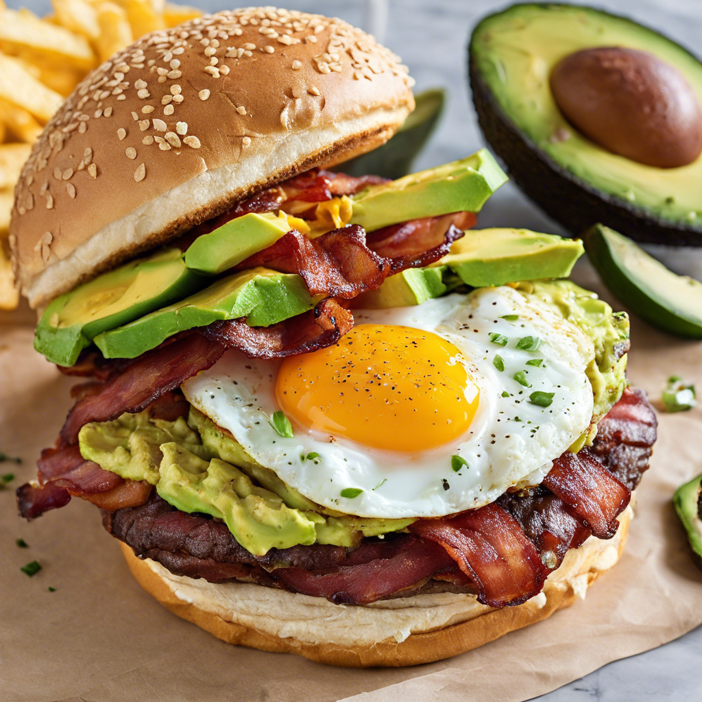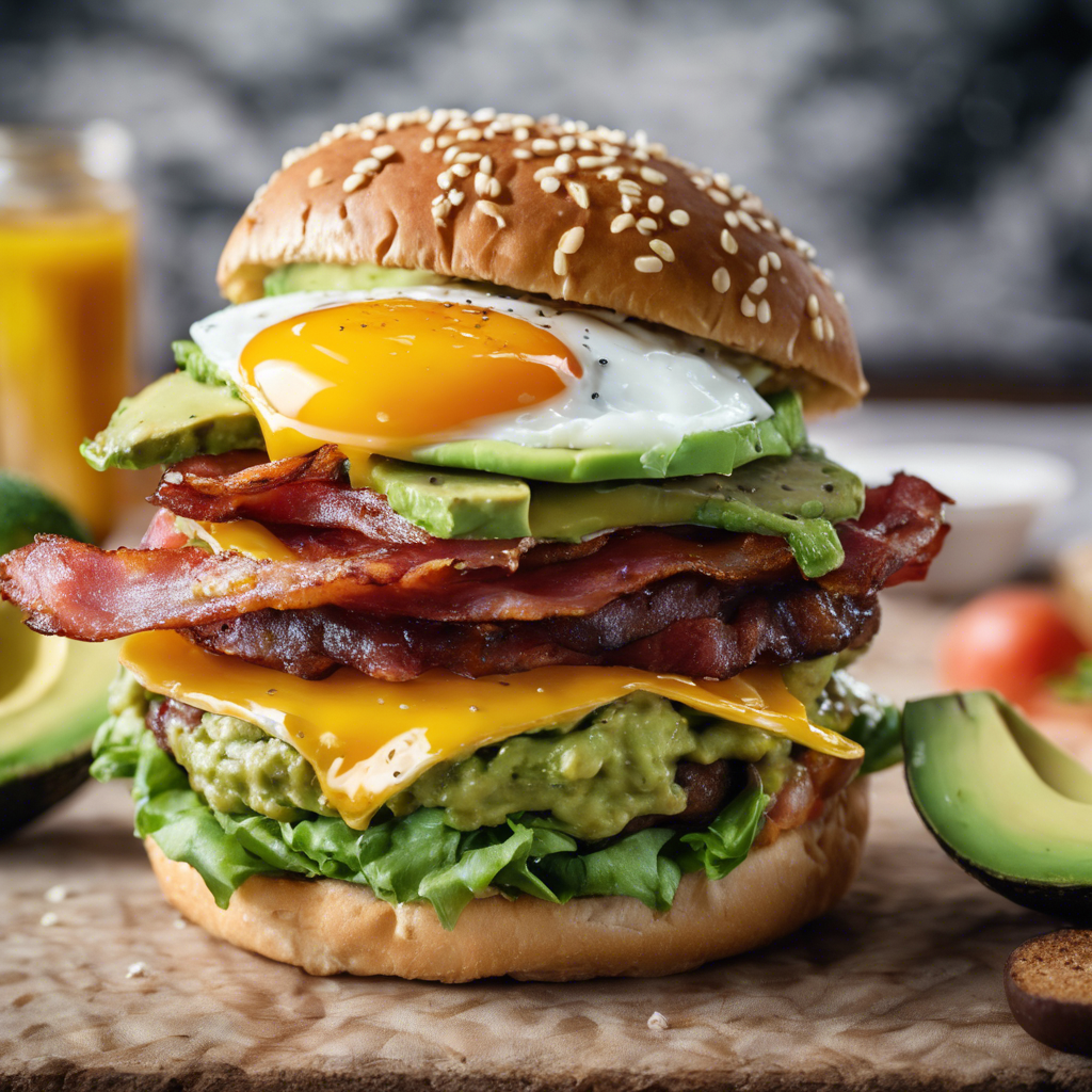 The Jumbo Bacon Avocado Burger with a fried egg on top is a mouthwatering creation that has become a beloved staple in the world of gourmet burgers. This indulgent dish features a juicy jumbo beef patty, crispy bacon, creamy avocado, and a perfectly fried egg, all nestled between a soft, toasted brioche bun. The history of this delectable burger can be traced back to the innovative chefs of Southern California, where the marriage of fresh, local ingredients and bold flavors gave birth to this iconic creation. Today, the best versions of this burger can be found in trendy burger joints and upscale eateries across the country. The key to perfecting this dish lies in sourcing high-quality ingredients and achieving the ideal balance of flavors and textures. Whether it's the sizzle of the bacon, the richness of the avocado, or the oozy yolk of the fried egg, every element plays a crucial role in creating a truly unforgettable dining experience. For those looking to put a unique spin on this classic, consider experimenting with alternative methods such as adding a spicy aioli or swapping the beef patty for a plant-based alternative. No matter the variation, the Jumbo Bacon Avocado Burger with a fried egg on top is sure to satisfy even the most discerning of burger enthusiasts.