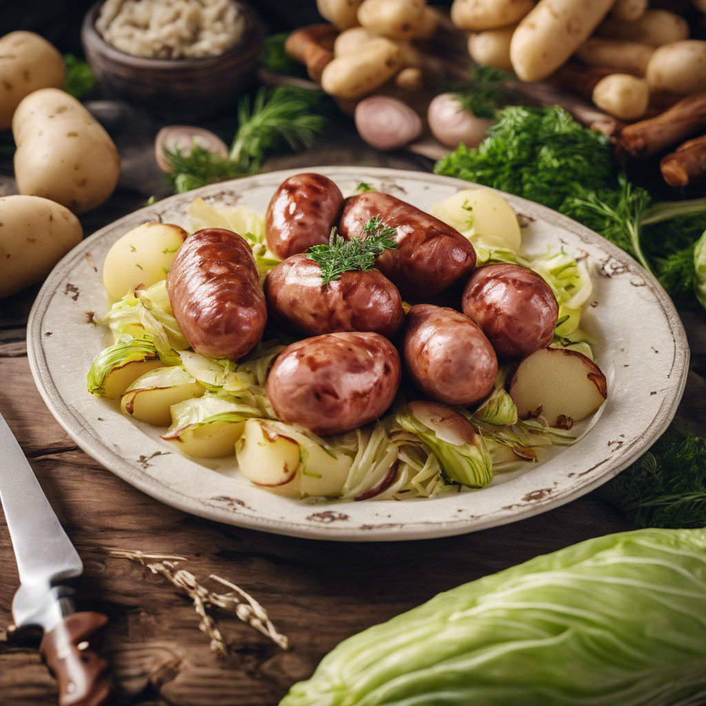 Kielbasa and Cabbage with added potatoes is a classic Polish dish that has been enjoyed for generations. This hearty and comforting meal has its roots in the rural regions of Poland, where ingredients like kielbasa (Polish sausage), cabbage, and potatoes were readily available. The dish is a perfect example of traditional Polish cuisine, known for its simple yet flavorful ingredients. The kielbasa is typically a smoked sausage, adding a rich and savory flavor to the dish. The cabbage and potatoes provide a satisfying and wholesome element, creating a well-rounded and filling meal. When cooked together, the flavors meld beautifully, resulting in a dish that is both comforting and delicious. In Poland, this dish is often prepared in family kitchens, with each cook adding their own unique touch. Some chefs may choose to brown the kielbasa before adding it to the pot, while others might opt for a slow simmer to allow the flavors to develop fully. The key is to allow the ingredients to meld together, creating a harmonious blend of flavors. While this dish has its origins in Poland, it has also become popular in Polish communities around the world. Polish restaurants in cities like Chicago, New York, and London often feature kielbasa and cabbage on their menus, drawing in both Polish expats and food enthusiasts alike. When it comes to making the best version of kielbasa and cabbage with added potatoes, sourcing high-quality kielbasa is essential. Look for a well-smoked sausage with a good balance of flavors. Additionally, using fresh, crisp cabbage and waxy potatoes will ensure a satisfying texture and taste. For those looking to put a unique spin on this classic dish, consider adding caraway seeds for an extra layer of flavor, or incorporating other root vegetables like carrots and parsnips. The beauty of kielbasa and cabbage with added potatoes lies in its versatility, allowing for personalization while still honoring its traditional roots.
