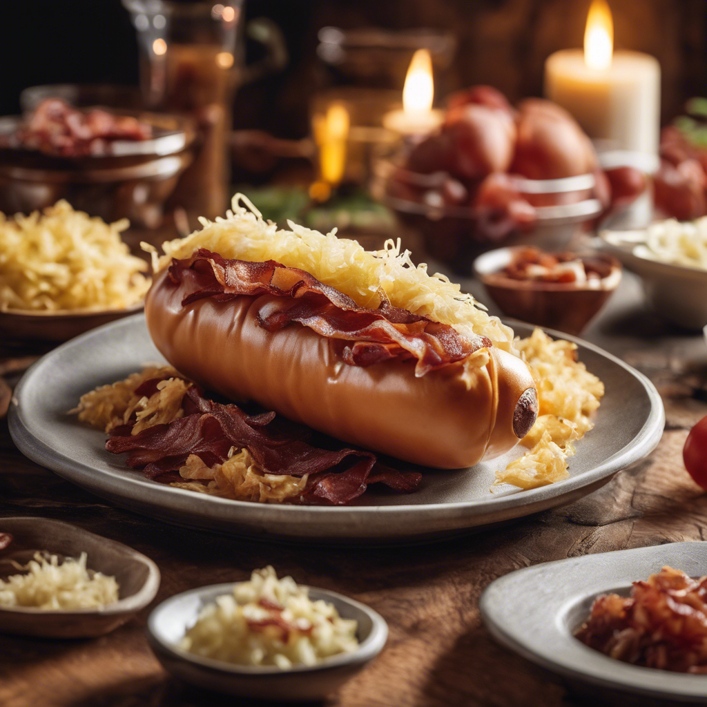 The history of Knackwurst with sauerkraut and crispy bacon is a tale of German culinary tradition meeting American innovation. This hearty dish has its roots in the rich culinary heritage of Germany, where knackwurst, a type of sausage known for its distinctive snap, is paired with tangy sauerkraut and topped with crispy bacon for a burst of flavor. In Germany, skilled chefs in regions like Bavaria and Thuringia have been perfecting the art of crafting knackwurst for centuries, using a blend of pork, beef, and a secret mix of spices to create the perfect balance of savory and smoky flavors. The sauerkraut, made from fermented cabbage, adds a delightful tanginess to the dish, while the crispy bacon provides a satisfying crunch. In the United States, this classic German dish has been embraced and adapted by chefs and home cooks alike, with variations appearing on menus in German restaurants and gastropubs across the country. The best versions of this dish can be found in authentic German eateries, where chefs pay homage to tradition while adding their own creative twists. When it comes to making this dish at home, the key is to source high-quality knackwurst and sauerkraut, as well as to cook the bacon to crispy perfection. Some alternative methods for making this dish include grilling the knackwurst for a smoky flavor or adding a touch of beer to the sauerkraut for an extra layer of complexity. For those seeking the ultimate Knackwurst with sauerkraut and crispy bacon experience, a visit to a renowned German restaurant or a trip to Germany itself is a must. Whether enjoyed in a cozy beer garden in Munich or at a bustling Oktoberfest celebration, this dish is a true celebration of German culinary tradition.