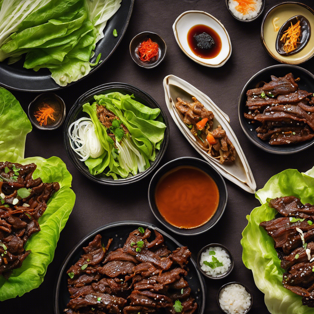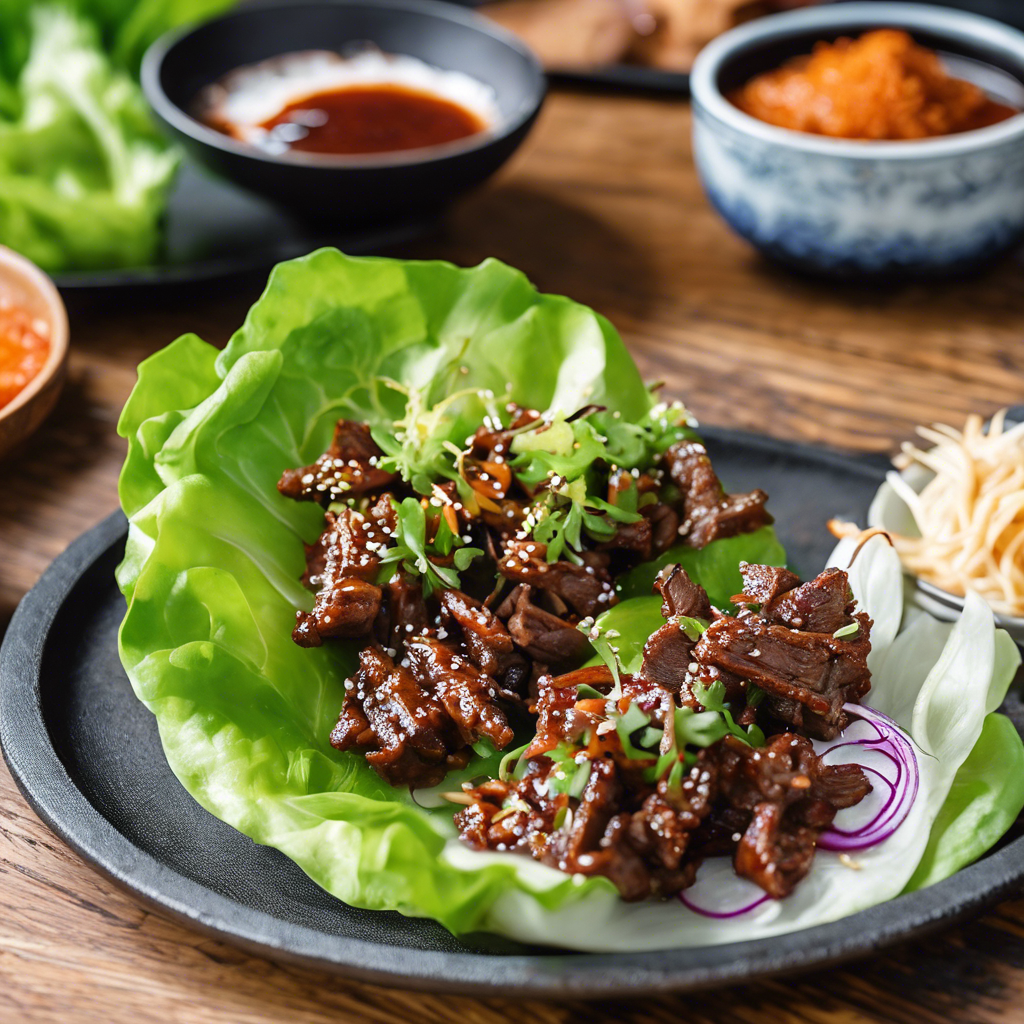 Korean BBQ beef served in lettuce wraps with ssamjang sauce is a beloved dish that has its roots in the Korean culinary tradition. This dish, known as "ssam," has been enjoyed for centuries and is a popular choice for a communal dining experience. The succulent, marinated beef is grilled to perfection, then wrapped in fresh, crisp lettuce leaves along with a dollop of flavorful ssamjang sauce. This combination of tender beef, crunchy lettuce, and savory sauce creates a harmonious explosion of flavors and textures in every bite. The dish is often associated with Korean barbecue restaurants, where skilled chefs showcase their expertise in grilling and flavoring the beef. In Korea, the best versions of this dish can be found in traditional barbecue houses, particularly in regions like Seoul and Jeju Island. The key to perfecting this dish lies in the marination of the beef, as well as the balance of flavors in the ssamjang sauce. While the classic recipe calls for beef, some variations include pork or even seafood as the main protein. Whether enjoyed at a bustling restaurant or prepared at home, Korean BBQ beef in lettuce wraps with ssamjang sauce is a delightful culinary experience that captures the essence of Korean cuisine.